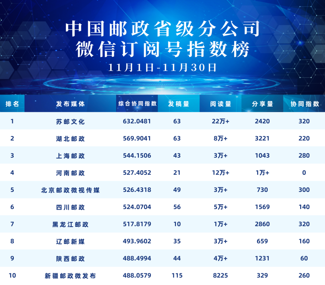 (目前协同指数仅将“中国邮政”微信公众号与“中国邮政”微信视频号相关数据纳入统计)