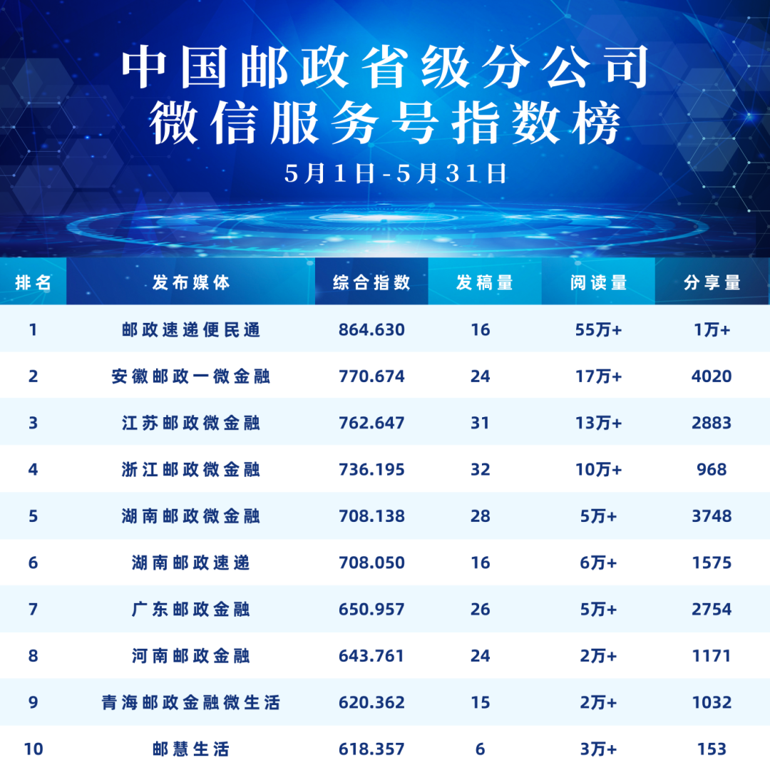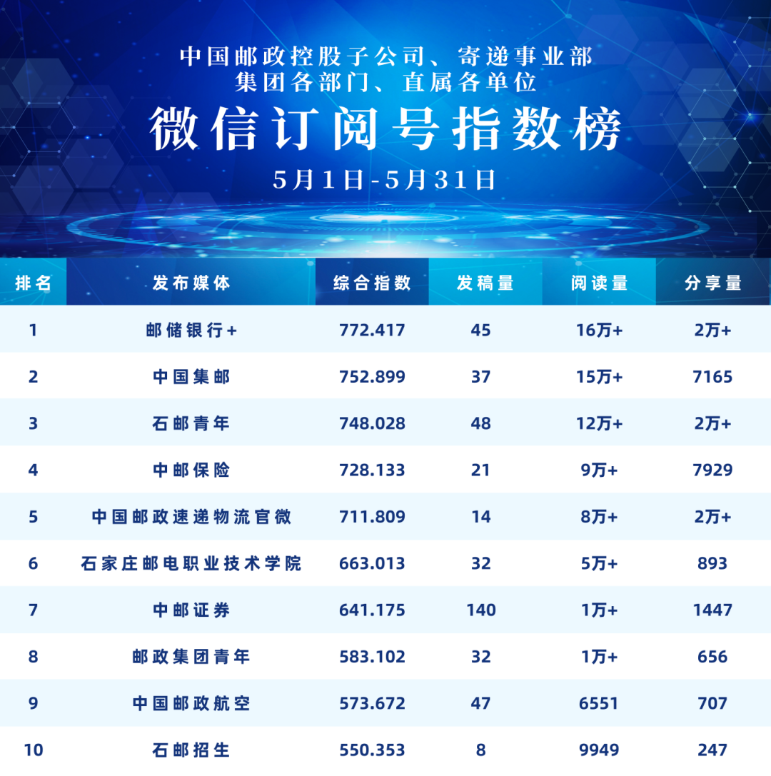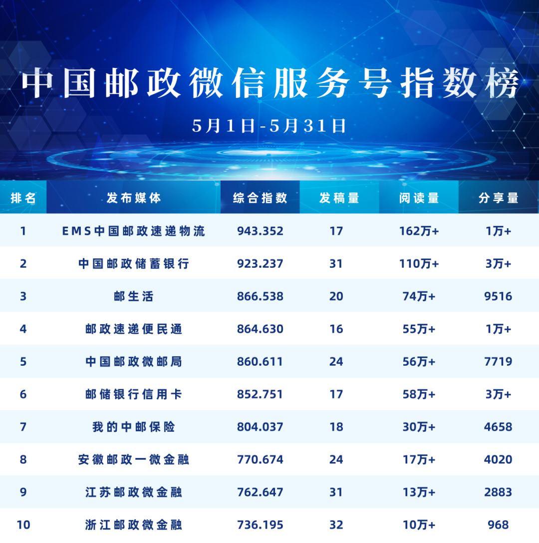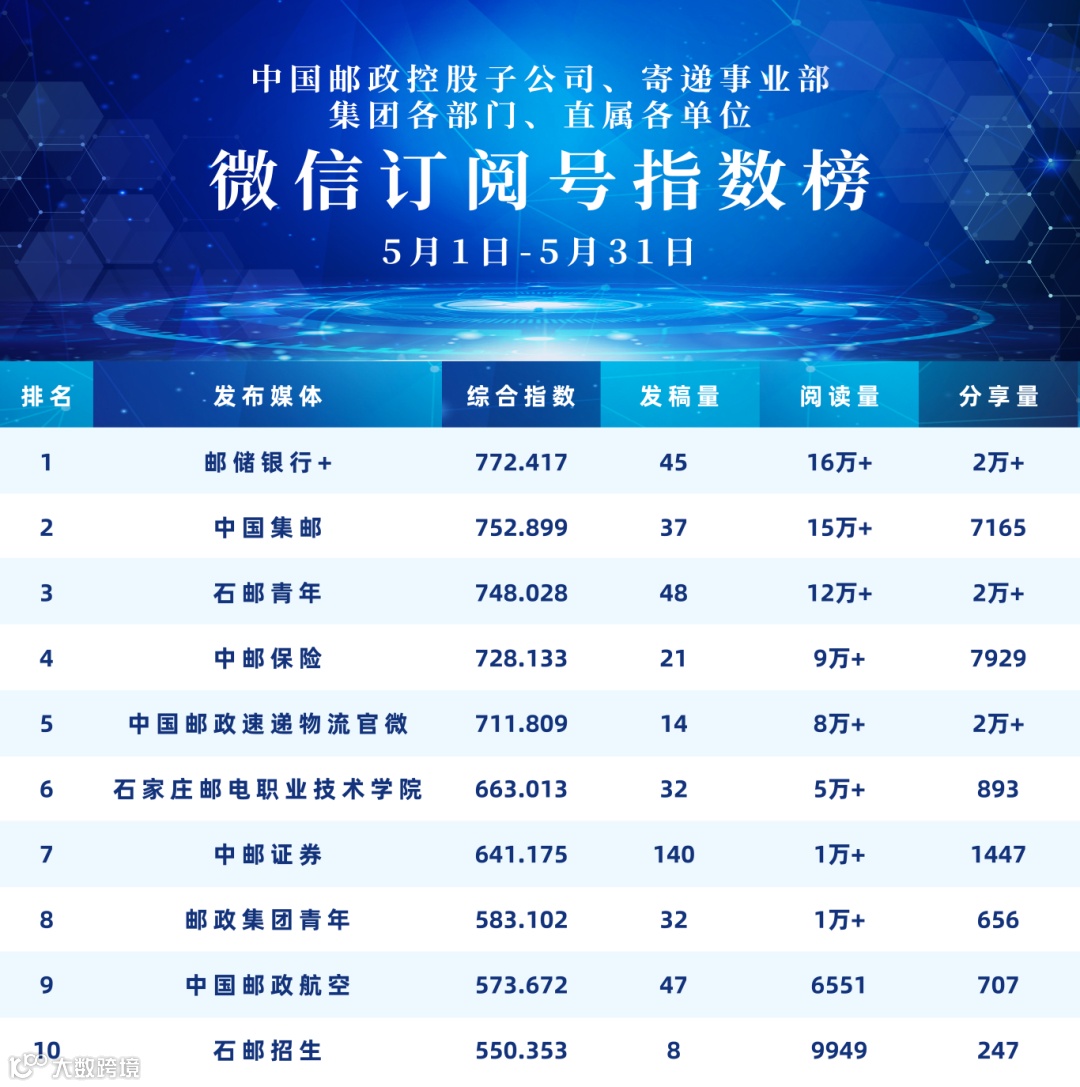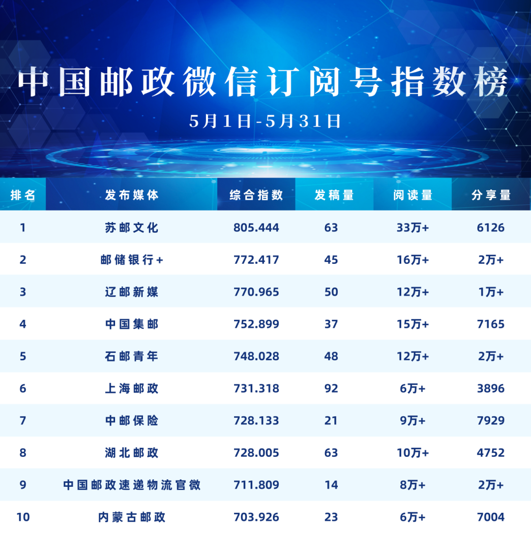 为全面评测全国邮政系统新媒体融合传播的影响力及宣传价值,集团公司综合部参照国资委新闻中心新媒体指数模型,结合邮政实际,编制《中国邮政新媒体矩阵传播情况月度评估报告》,进一步规范全国邮政系统互联网用户公众账号的运营管理,切实做到新媒体传播效果评估有依据、考核有抓手。