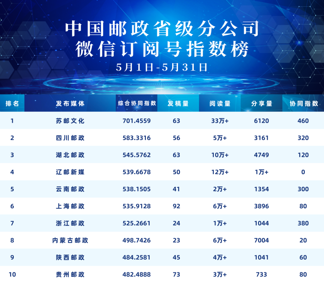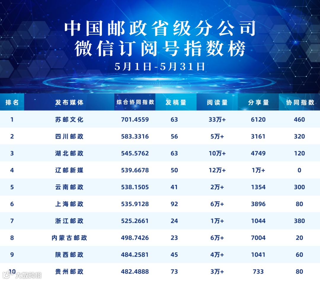 (目前协同指数仅将“中国邮政”微信公众号与“中国邮政”微信视频号相关数据纳入统计)