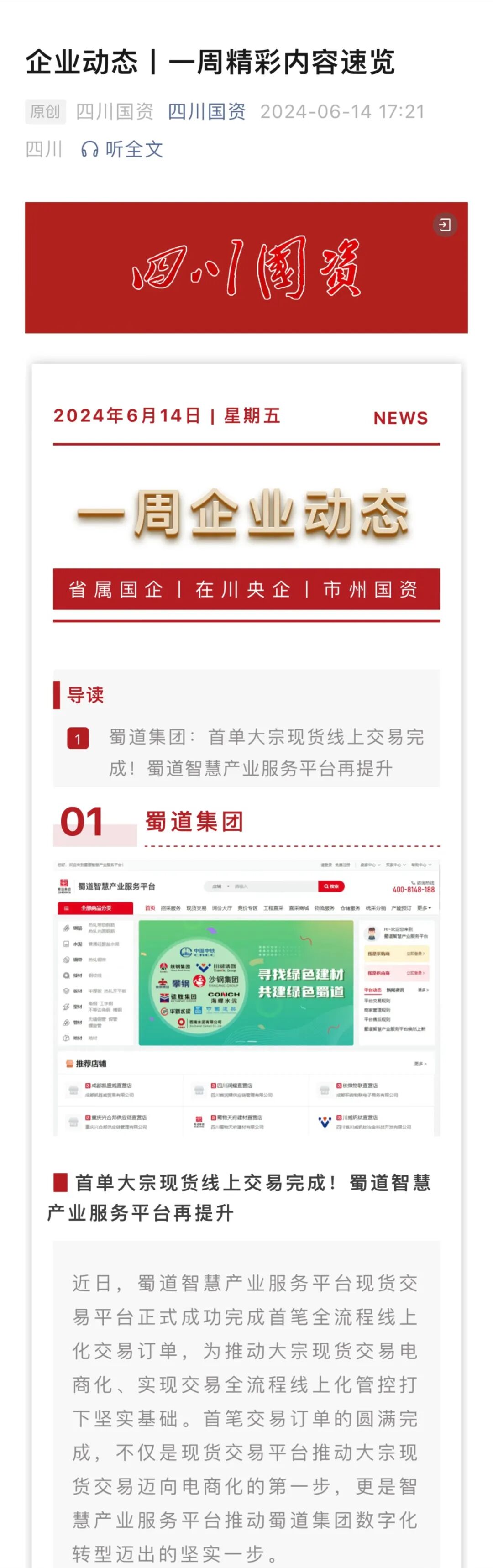 四川省国资委关注 | 首单大宗现货线上交易完成!蜀道智慧产业服务平台再提升