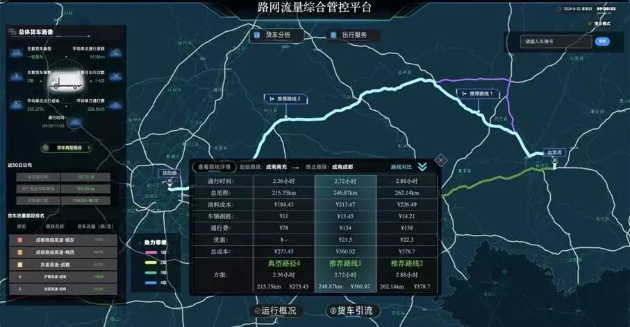 路网流量综合管控平台。通过该系统,后方服务管理团队可以有效实现车辆与信息同步,在道路上安全“奔跑”。王海 摄