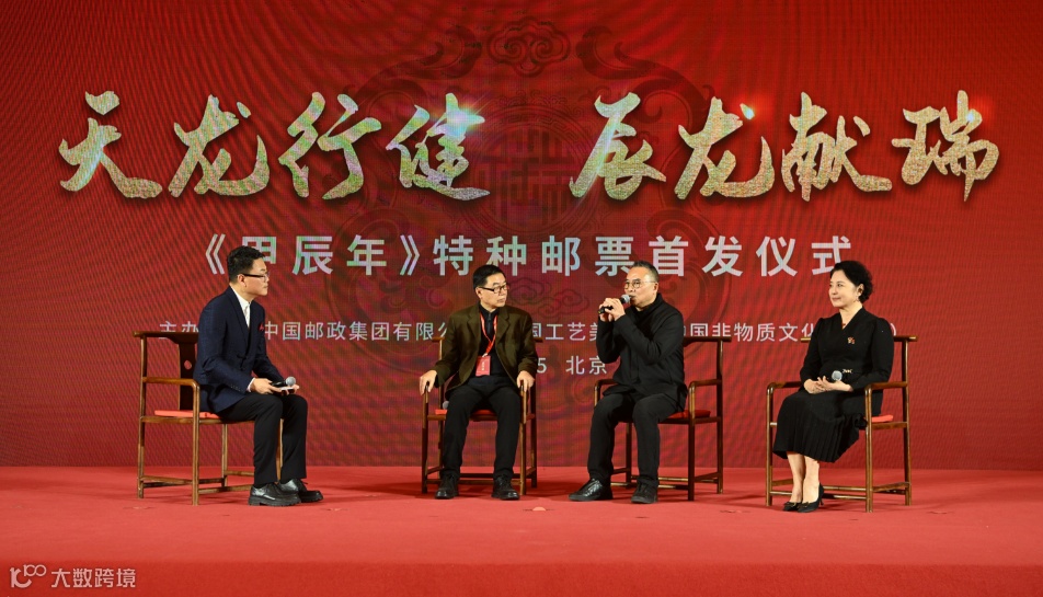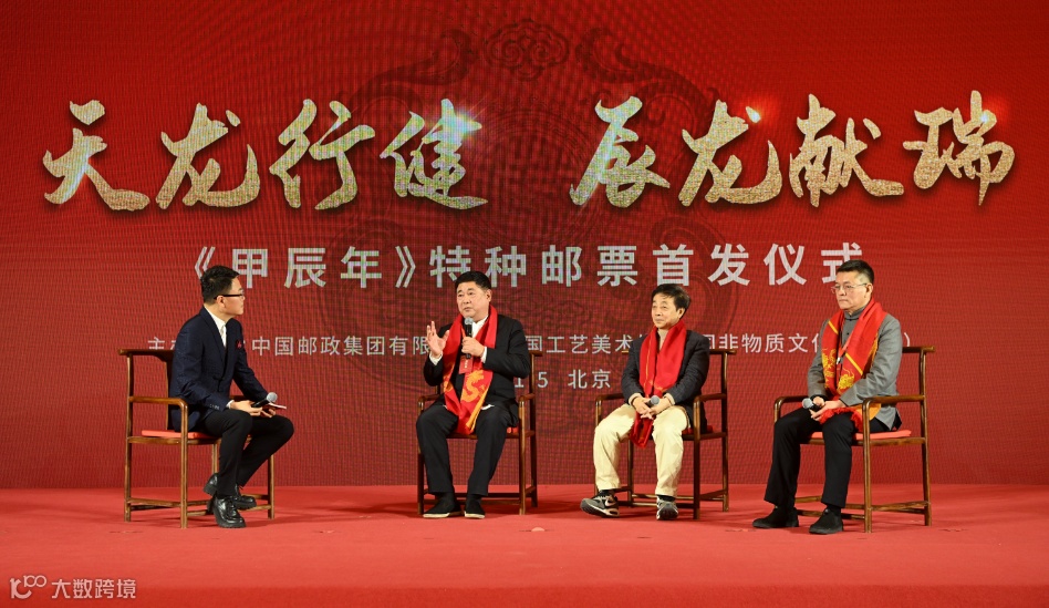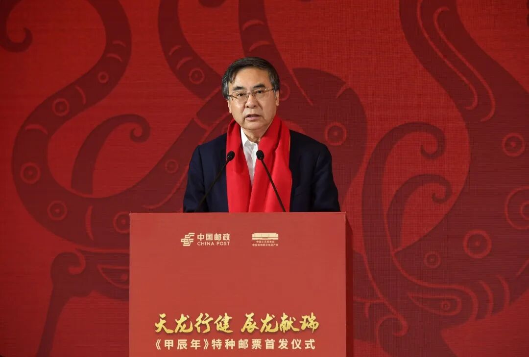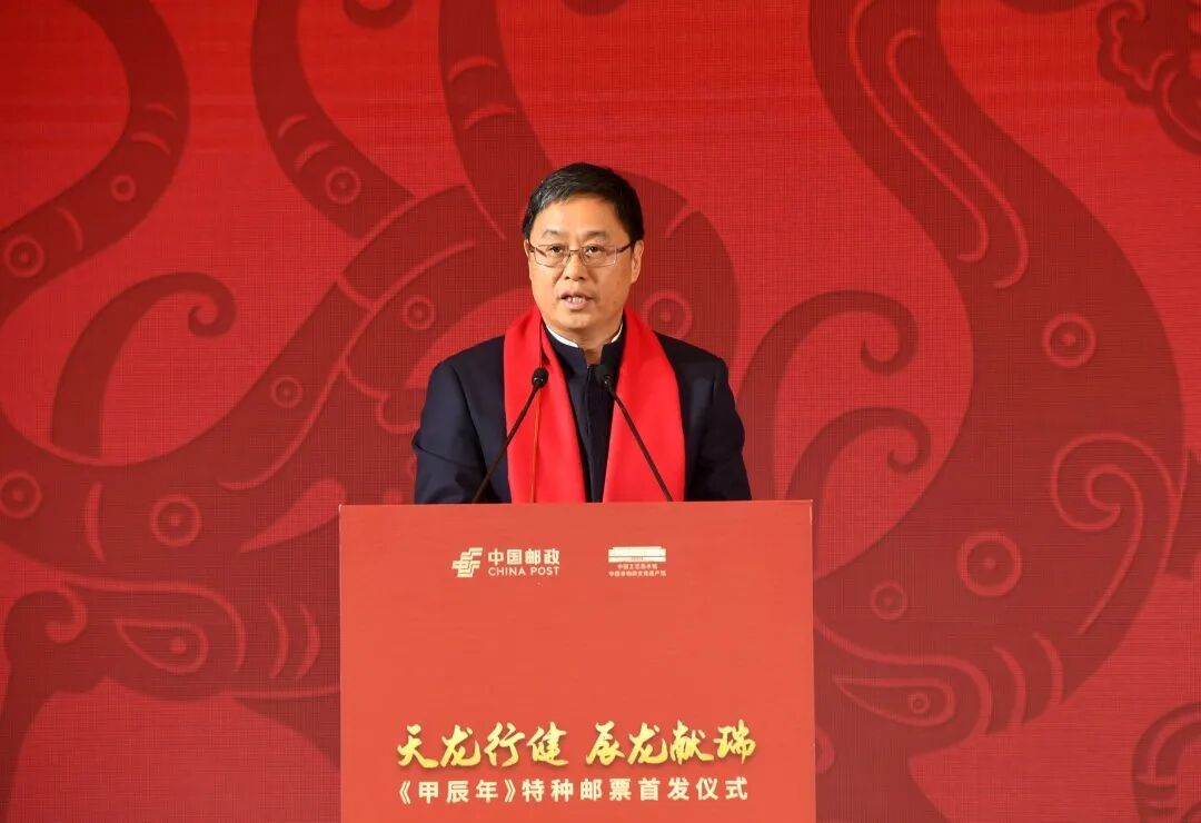 刘爱力在致辞中表示,生肖文化已有两千多年的历史,依托作为“国家名片”的邮票载体,生肖邮票以深入人心、喜闻乐见的选题内容,诠释着中国传统民俗文化以“真善美”为终极追求的美学原则和人与自然和谐共生的哲学内涵。2024年是生肖龙年,龙是中华民族的图腾,被赋予了多重美好的寓意;纵贯上下五千年的龙文化,更是塑造了中国人的文化基因。甲辰龙年生肖邮票从设计理念、图稿征集到雕刻印制,在每一个环节都融入了群众的智慧和各领域权威专家的意见,真正做到了兼容并蓄、与古为新,全方位、全过程地体现了对民族文化经典的尊重和对融合大众审美的坚持。