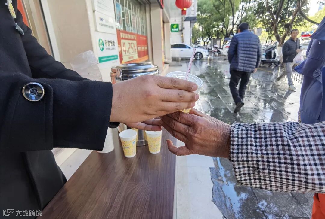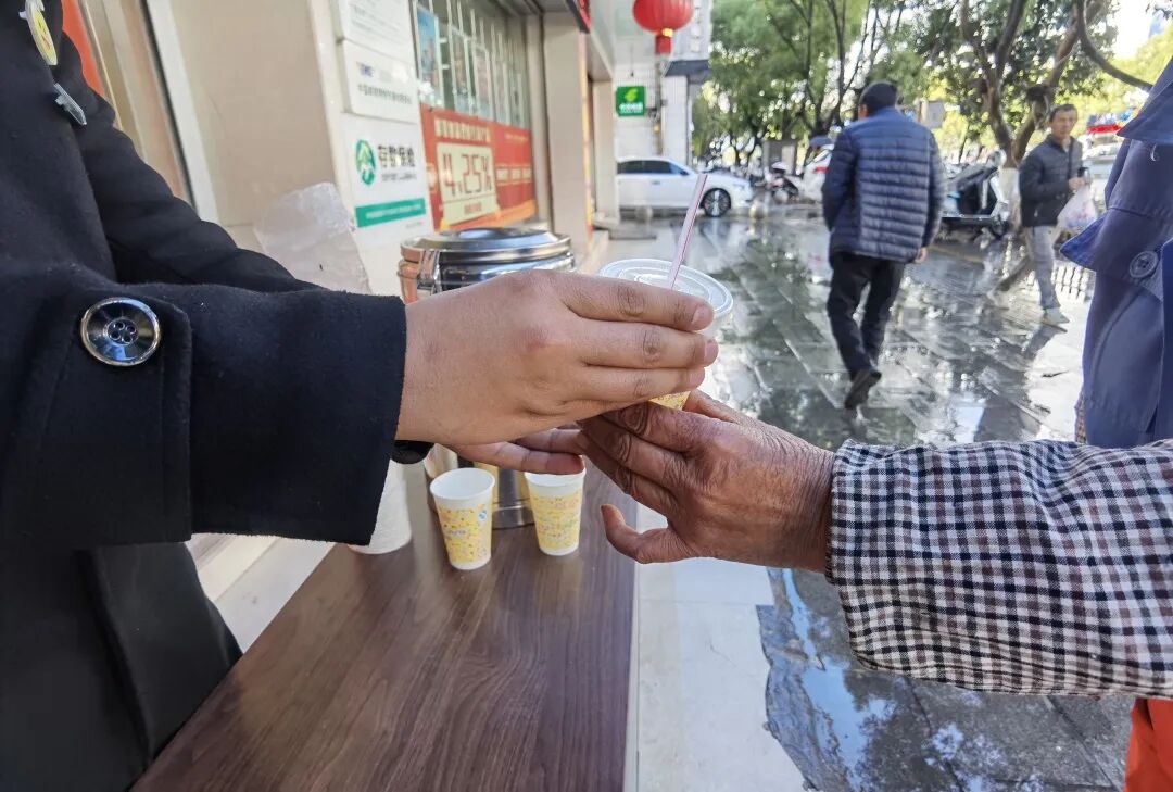 这双手递上的不仅是一杯热水,更是一份关爱,将邮政的暖心服务落到实处。