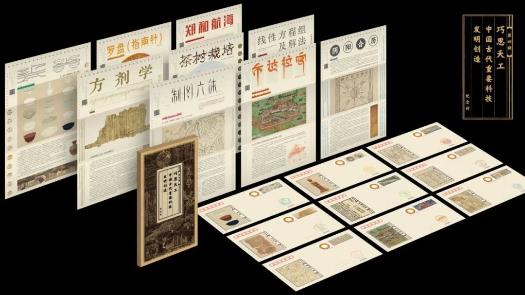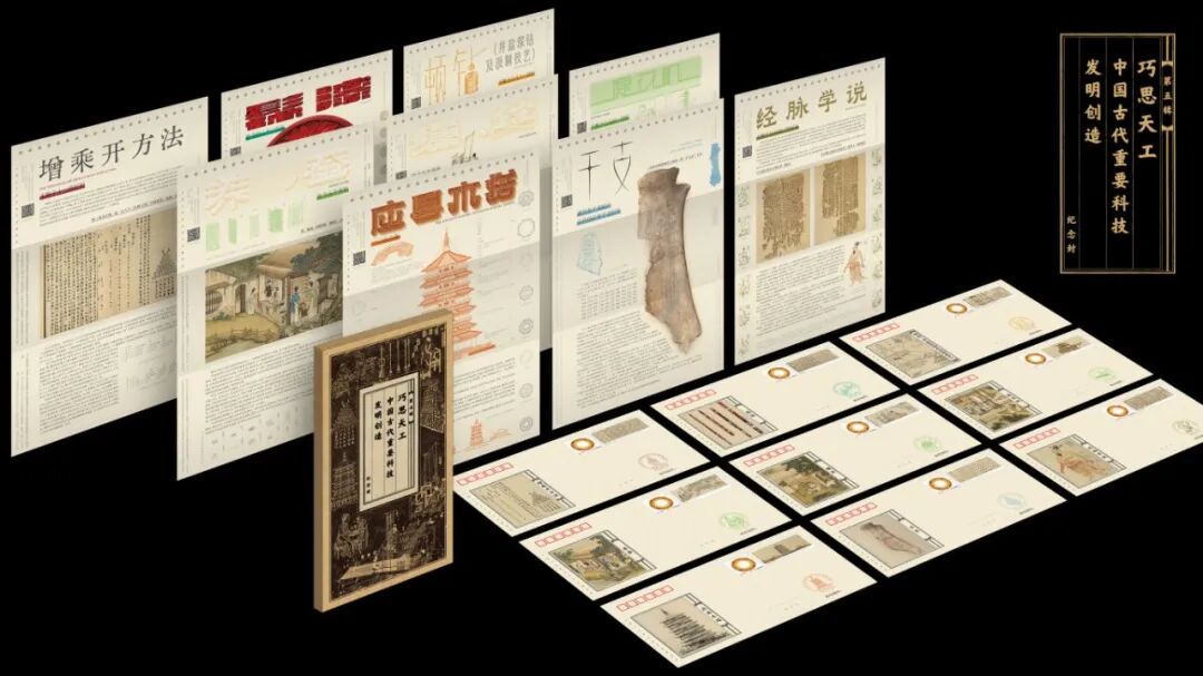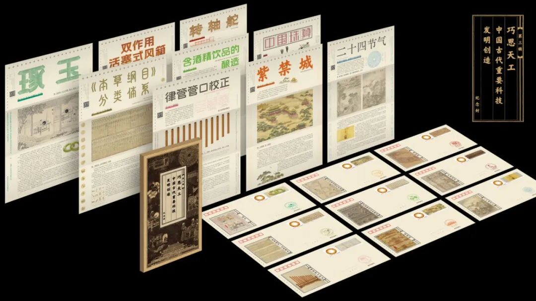 截至2024年5月,中国邮政已发行了五辑《巧思天工——中国古代重要科技发明创造》纪念封和个性化邮票本册系列邮品,涉及农学与纺织、数学、天文、医药学、材料与制器、机器与仪器、车船火药与火器、土木工程、光学地学与韵律学九大主题,几乎囊括了可触达的学科领域。邮品内容严谨、设计精美、兼具学术性和趣味性,是科技界与集邮界共同致力科学文化传承与发展的精品力作。