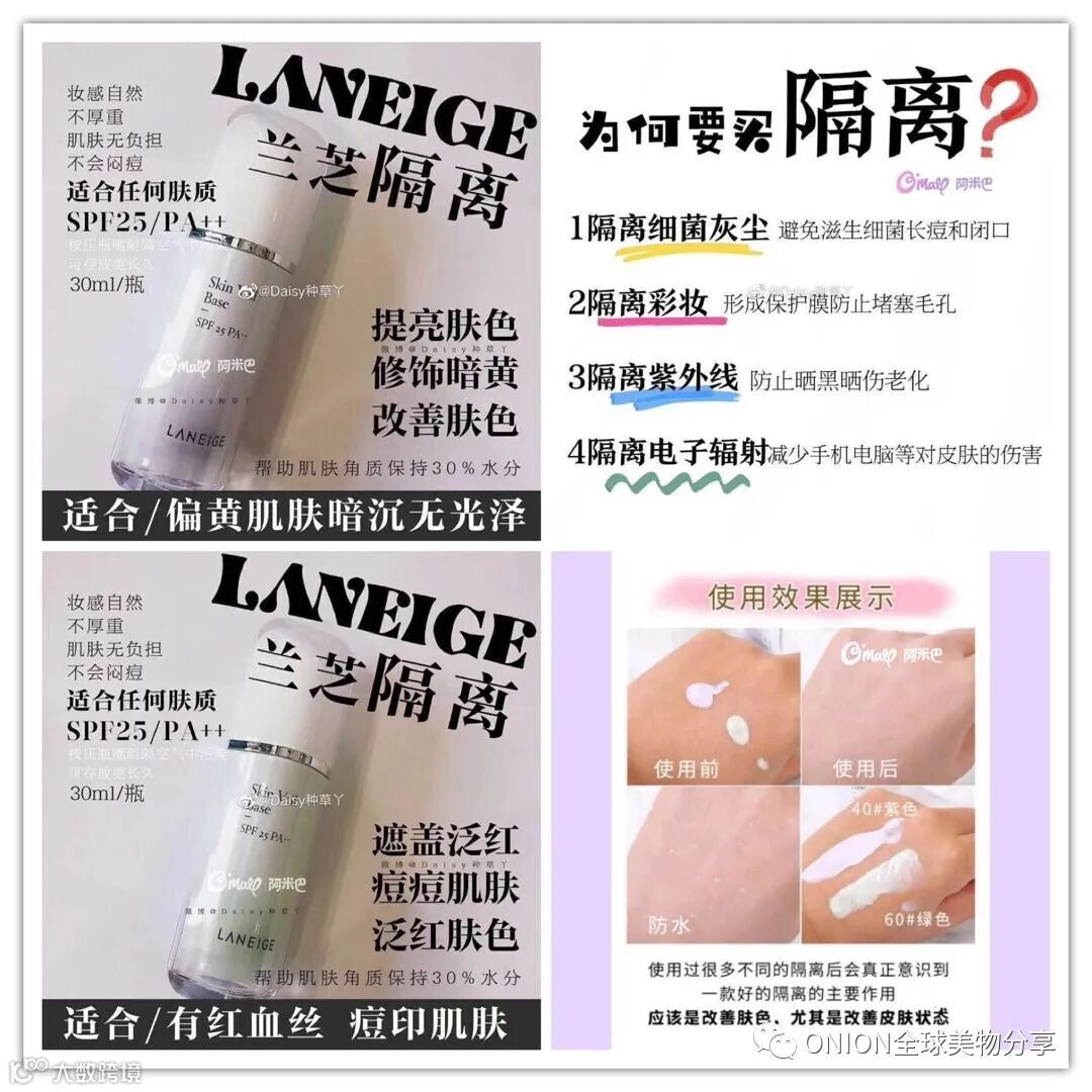 杨紫同款:LANEIGE兰芝 水透光提亮隔离乳 40柔紫色 SPF41/PA++ 35ml 折后¥164.25