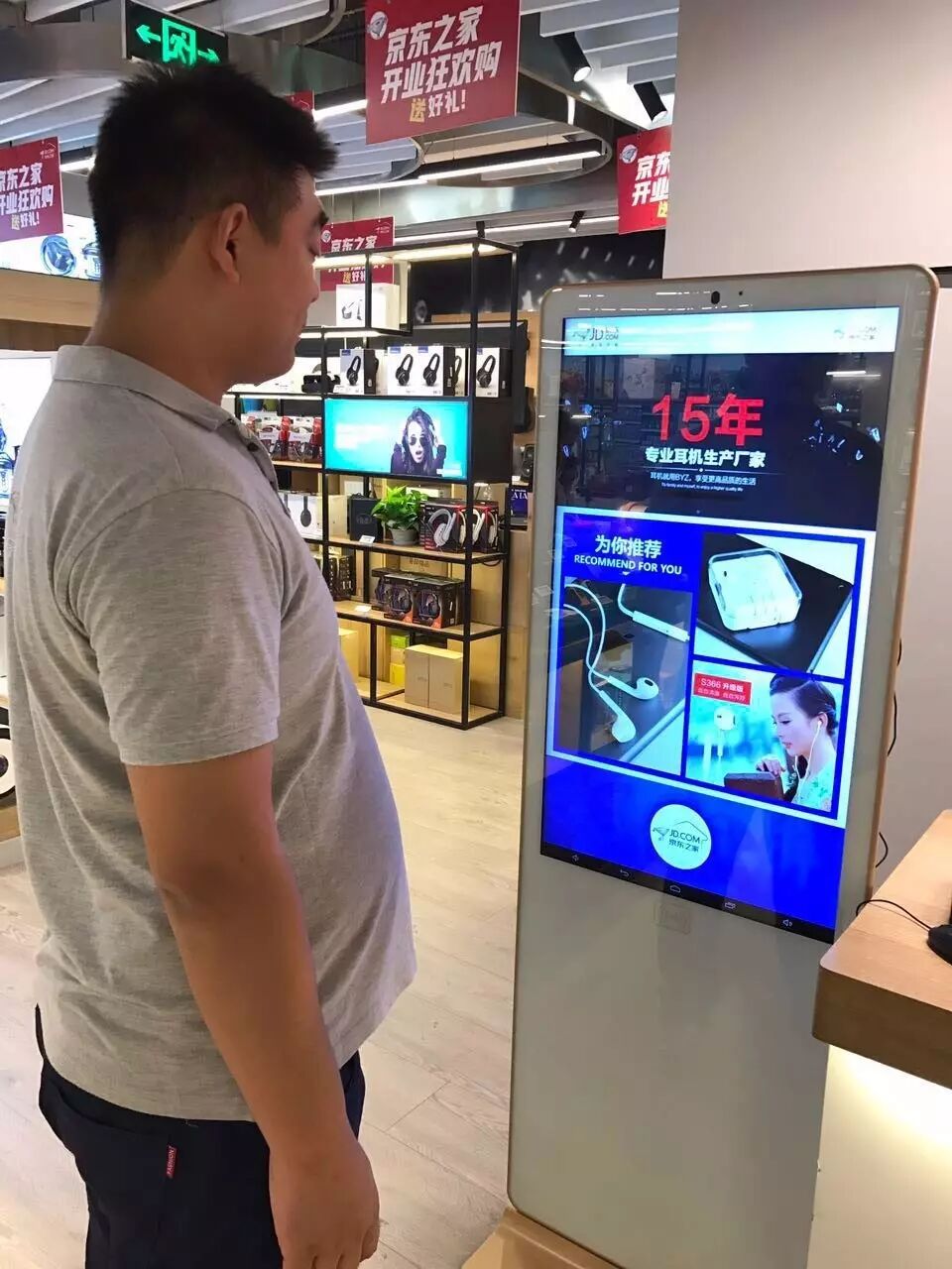 京东店铺客流精准分析系统提供了对店内、店外顾客的精细分析,通过对店外和进入店内的客流进行年龄、性别以及熟客与否等维度监控,京东之家可以精确量化分析进店流量漏斗,如店外人群分布和进入店内人群分布等,实现对不同群体的客流量监测,记录不同群体顾客每天的进店率、单位时间客流量趋势图等,给店铺管理提供非常重要的用户行为转化数据。同时,客流精准分析系统采用了人脸、性别、年龄识别技术,将会与京东之家店内的电子广告屏相结合,当系统检测到当前用户的性别时,能够依据京东商城的大数据,获取目前针对该性别用户感兴趣的、有较高促销力度的商品进行推荐,并与店内商品进行同步。这时用户可及时获取到促销信息,在店内购买。