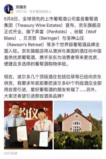 众所周知,京东集团董事局主席兼首席执行官刘强东是红酒爱好者,在他的带领下,京东红酒直采代表团在海外与酒庄庄主及行业专家保持深入沟通。