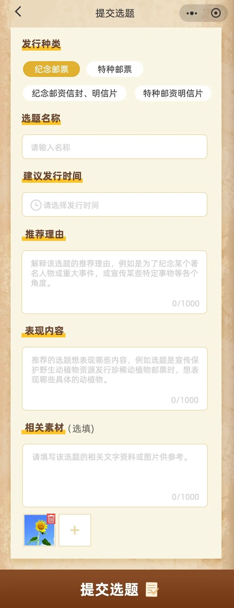 进入邮票选题征集入口