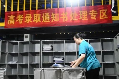 各处理中心安排长期稳定、业务熟练的人员进行高考录取通知书邮件的接卸、分拣、封发、发运全过程。