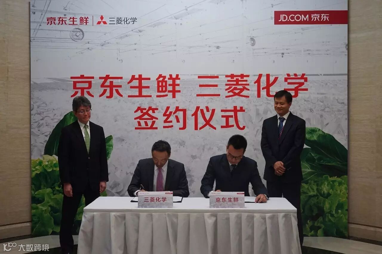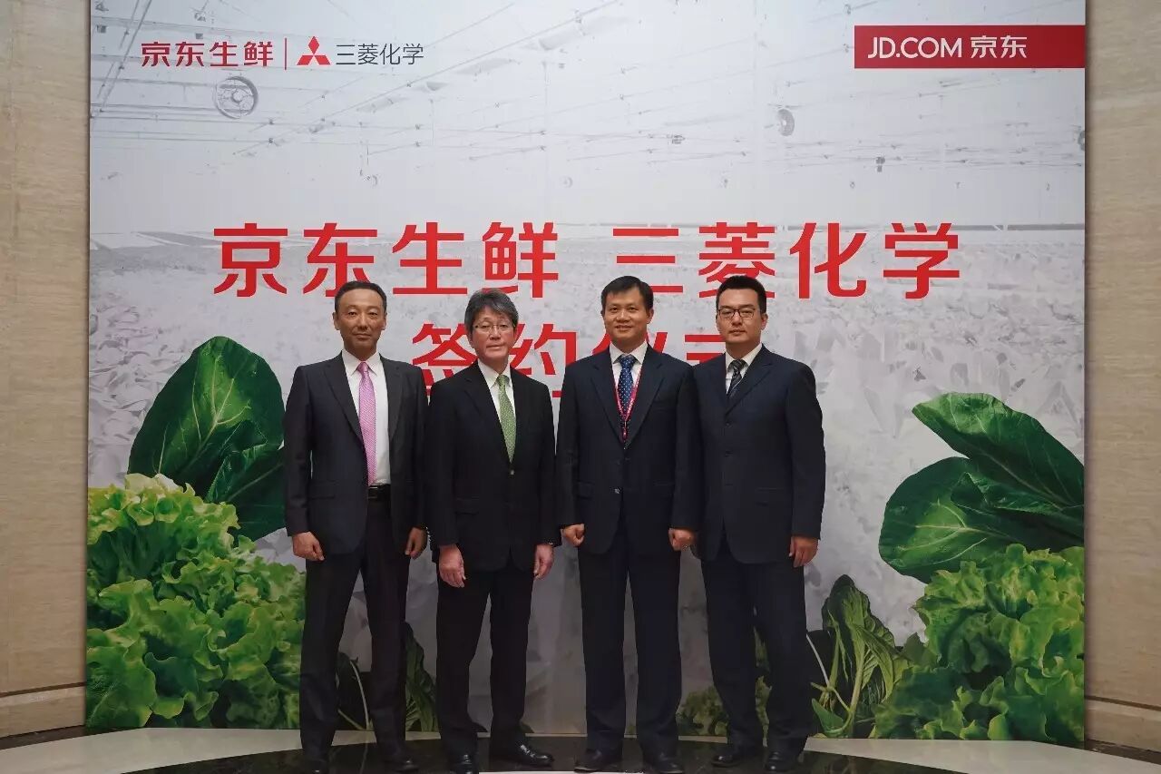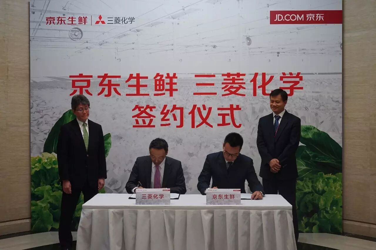 6月20日,京东生鲜与日本三菱化学株式会社(以下简称:三菱化学)战略合作,就水培蔬菜栽培以及卫生管理等方面的技术提携达成合作意向,京东生鲜将使用三菱化学研发生产的人工智能光照、自然太阳光照并用水培蔬菜栽培系统(以下简称:蔬菜栽培系统)。