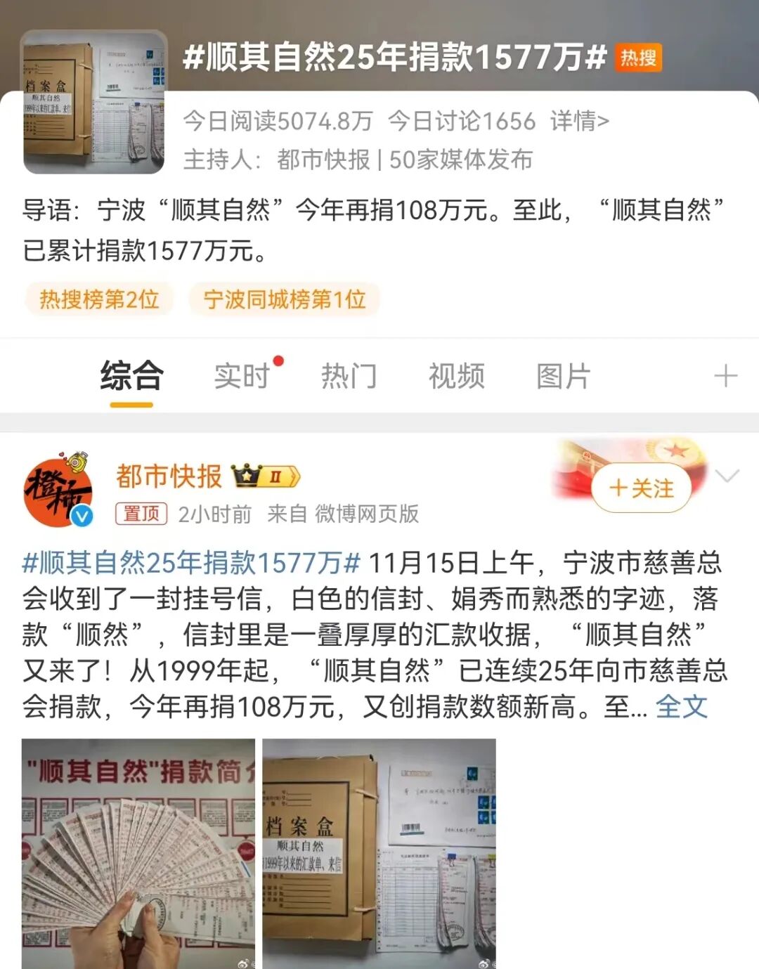 “顺其自然”25次捐款共计1577万元,累计已使用1469万元。