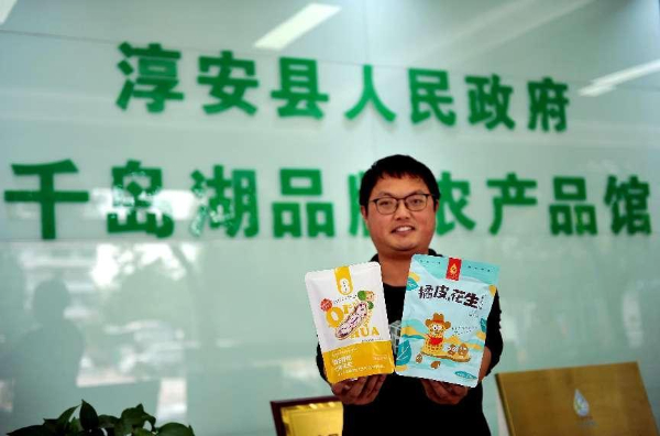 “花生哥”之所以叫“花生哥”是因为,他的生意就是围绕花生展开的。曾经有海外大型商超工作经验的英杰,选择了淳安县这个山清水秀的地方进行创业。淳安县依托千岛湖这一得天独厚的优势资源,在大力发展旅游业的同时,还将农业与之结合,中国邮政的千岛湖品牌农产品馆便应运而生。在这里,新华网记者遇见了“花生哥”。