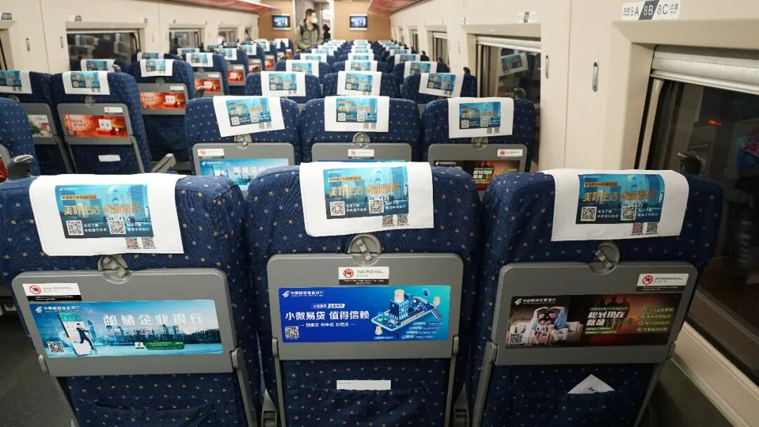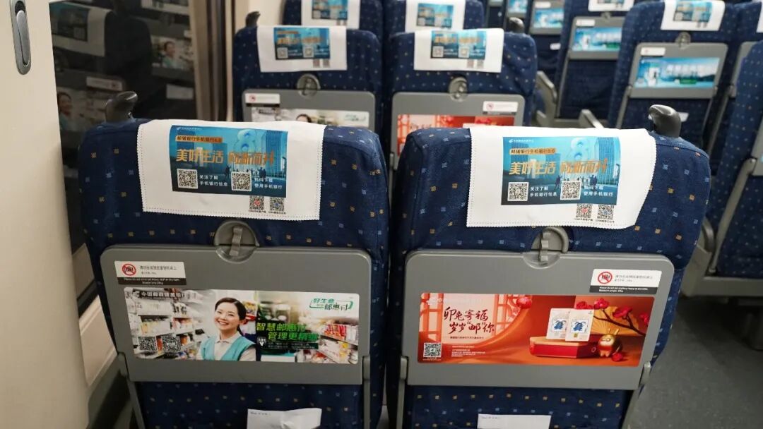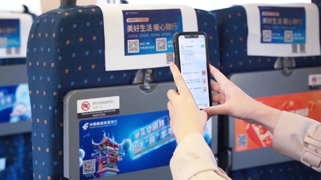 邮储银行品牌专列通过不同时段、不同线路、不同点位,展示手机银行8.0、个人养老金、邮享贷、邮车贷、极速贷、小微易贷、邮储企业手机银行、U定投、邮惠付、快捷支付、生肖主题信用卡、新市民U+卡等十多种重点业务产品,定位优质客群,支撑业务拓展。乘客在旅途闲暇中观看广告画面,扫码了解信息,体验优质金融服务,享受邮储银行助力下的美好生活。