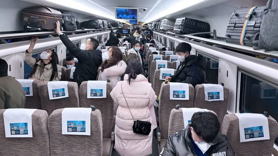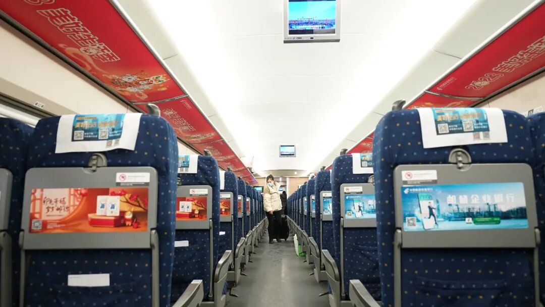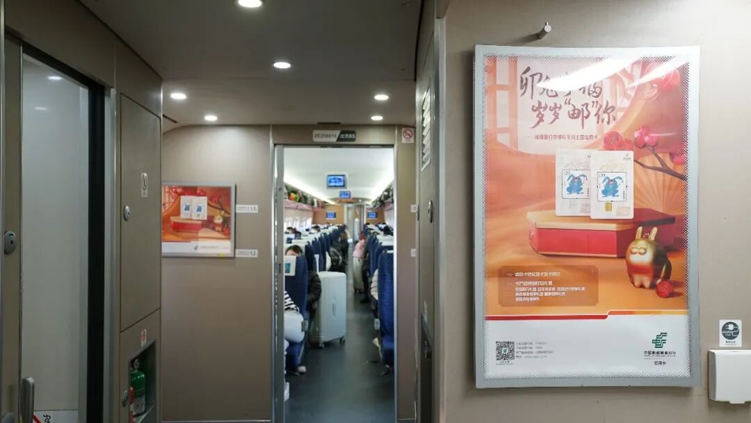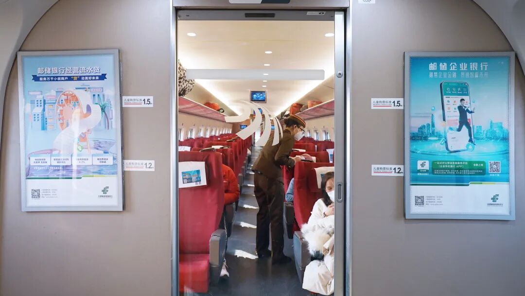 岁末年初,邮储银行冠名的“绿色让生活更美好”京广线、京哈线高铁品牌专列陪伴万千乘客踏上归乡旅途。大红的“2023美好生活季”主题海报在行李架上一线排开,头枕巾上、小桌板下、车厢门边,各色海报缤纷多彩,在车厢内营造出浓厚的节日气氛。京广线、京哈线冠名列车途经北京、广州、深圳、天津、武汉、郑州、长沙、大连、哈尔滨等重要城市,邮储银行一路见证来自天南地北的美好相聚。
