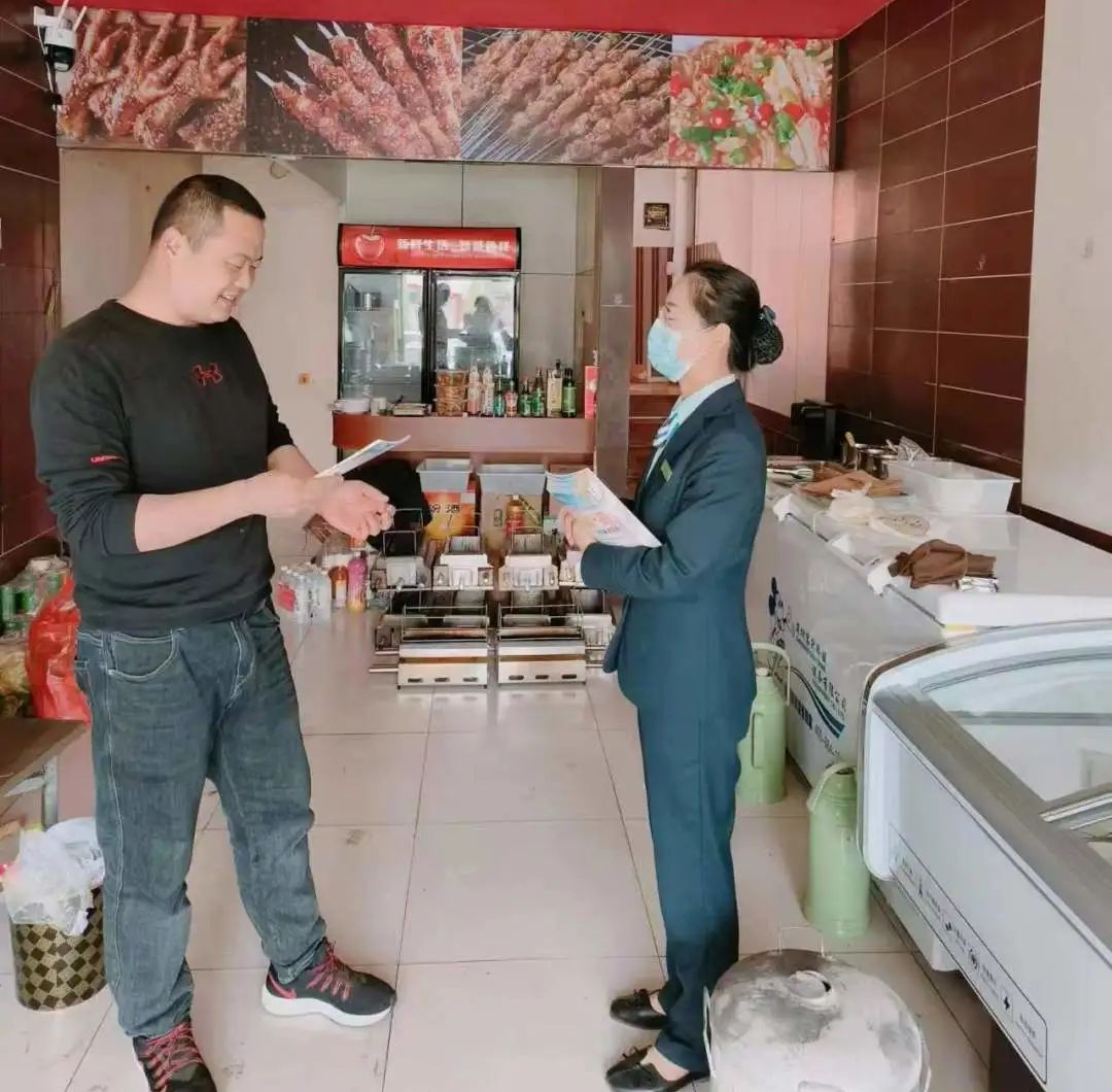 淄博邮政工作人员携带移动展业设备进行上门办理,为客户现场布放收单设备。目前,已走访800余户烧烤店铺,为420余户烧烤商户布放了设备,满足了商户收费需求。