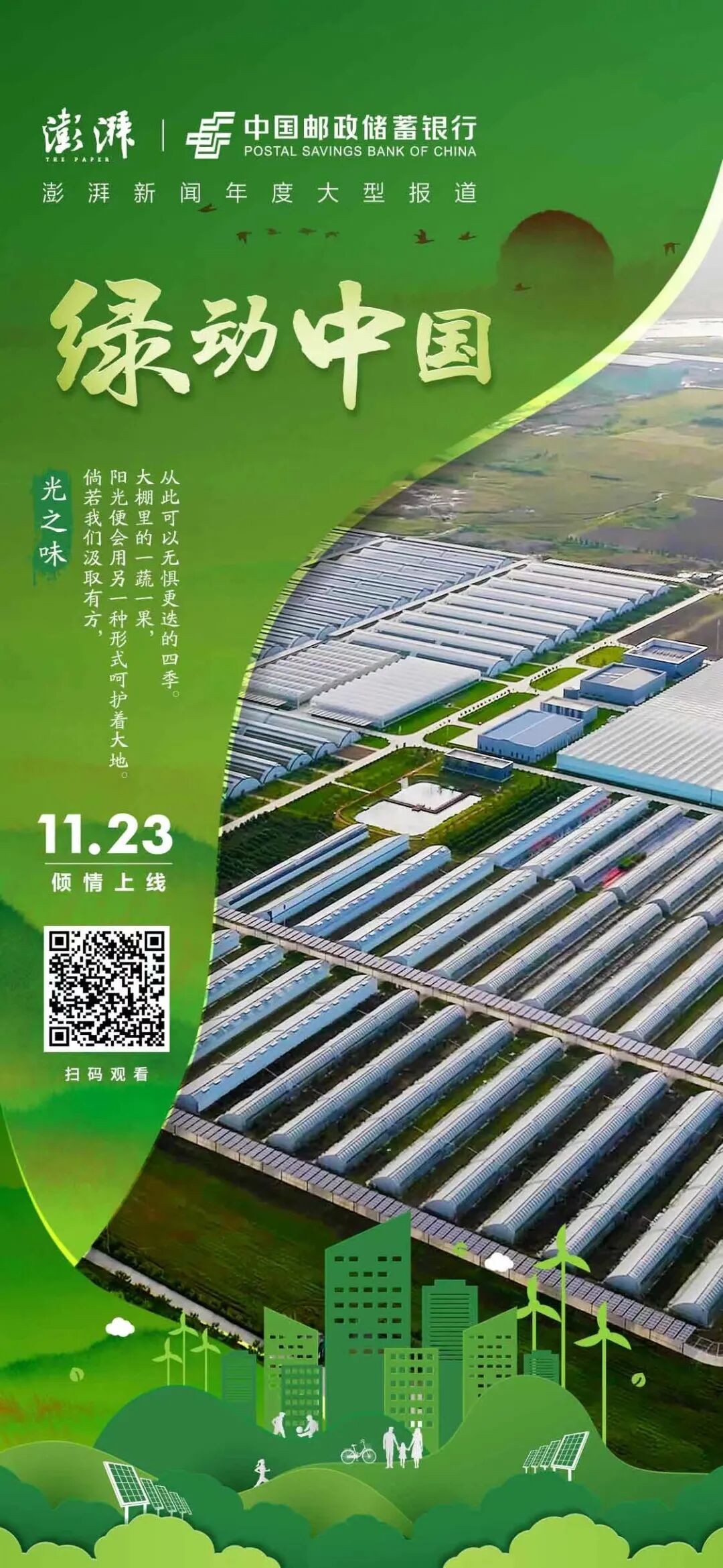 2022年,澎湃新闻策划年度大型报道项目《绿动中国》,走进河南、广东、陕西、甘肃等地,聚焦清洁能源、低碳产业,挖掘企业在绿色发展、高质量转型过程中所做的努力与探索,带您领略“金融活水润泽绿水青山”的系列故事,感受“绿色让生活更美好”。