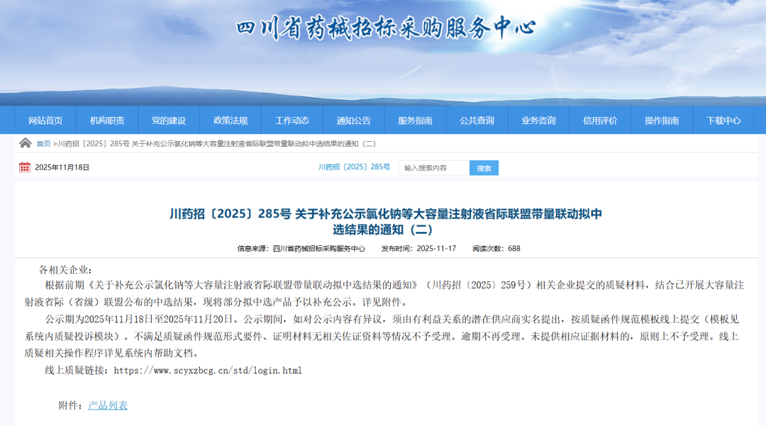 关于补充公示氯化钠等大容量注射液省际联盟带量联动拟中选结果的通知