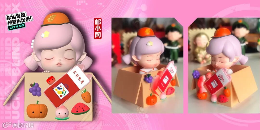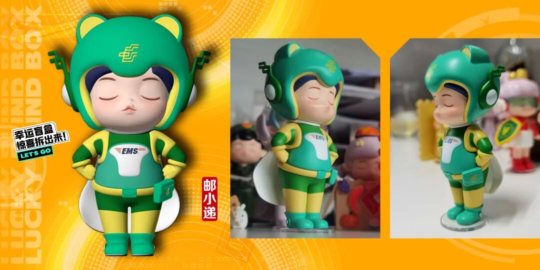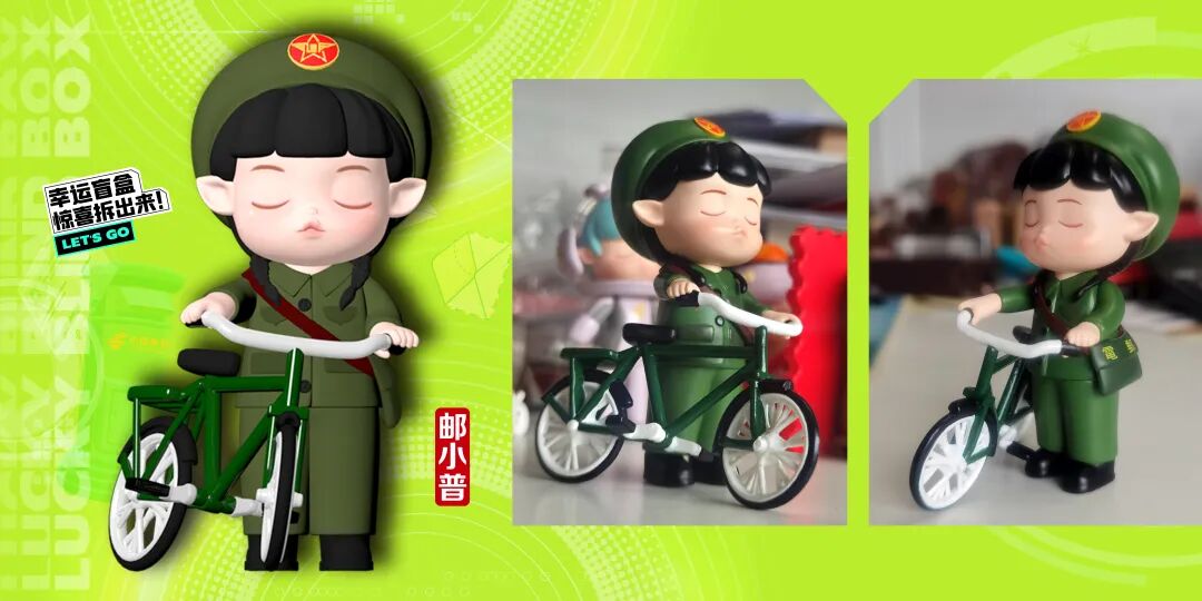 爱尔芙·邮小普,以最具传统情怀的邮递员服装和邮政绿色自行车为原型,展现中国邮政的“普遍服务”,即使身在天涯海角,邮政信使也会将远方的消息带到家门口。女孩淳朴萌萌的可爱感扑面而来,邮小普是这一组盲盒中最写实、最具情怀的一个。