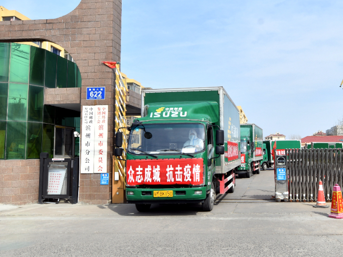 接到求助后,滨州邮政立即调配车辆、驾驶人员,开通“绿色通道”免费运输防疫物资。3月20日下午2点,3辆邮车到达红十字会指定地点,防疫物资分别装车后,以最快的速度将其运至三个县(市)的物资交接地点,高效快速地完成了运送任务。