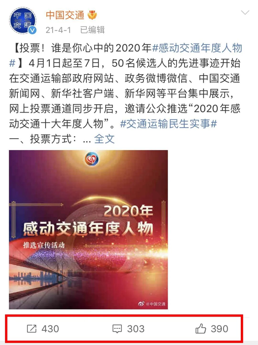 ③通过网友转发、有效评论、点赞总和统计票数,按照2:1.5:1的加权票数计算(1条转发算2票、1条评论算1.5票、1条点赞算1票)。