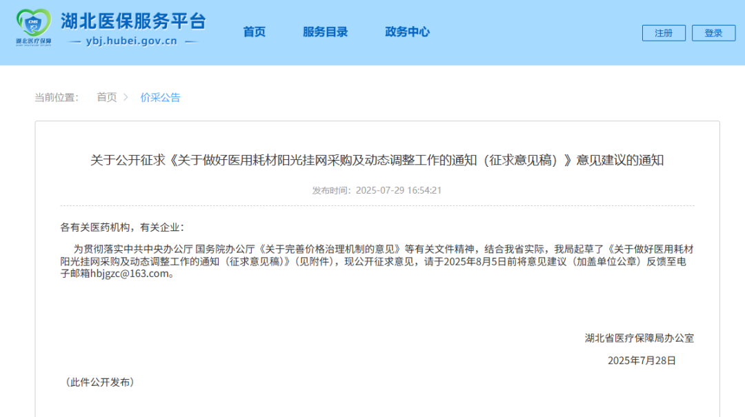 医用耗材挂网价格、企业基本信息和产品基本信息实行动态调整,有关信息通过省医保采购平台发布。