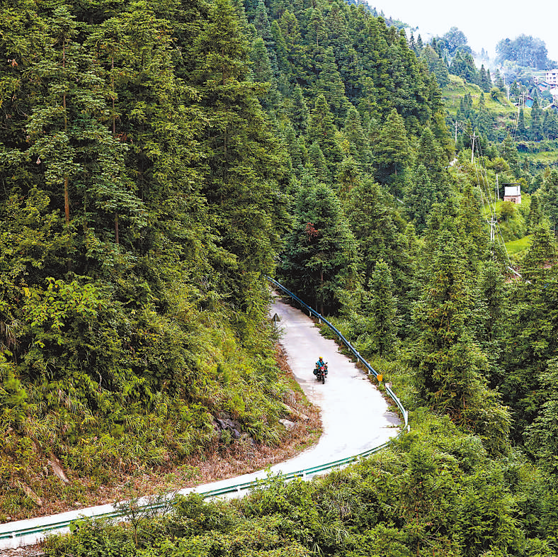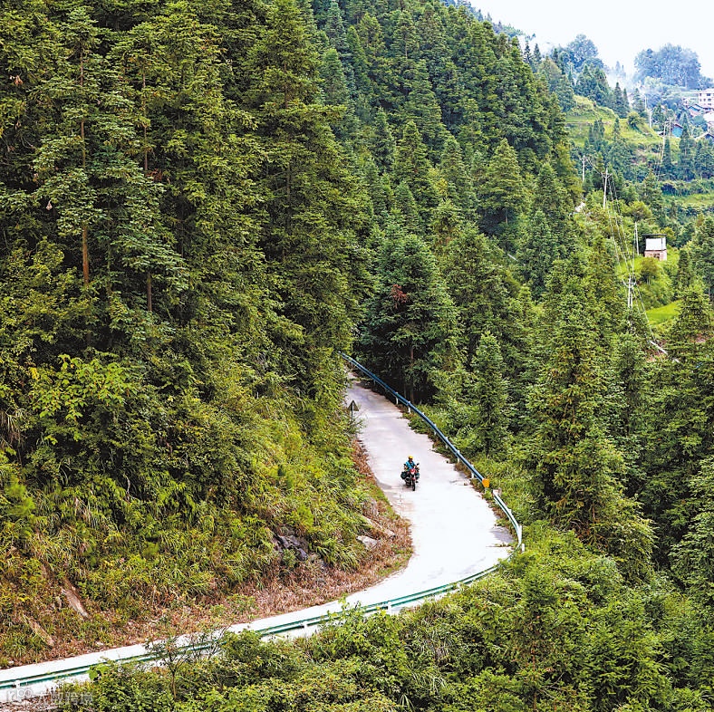 邮递员张林昌行驶在贵州省锦屏县河口乡裕和村的公路上。杨晓海摄(影像中国)
