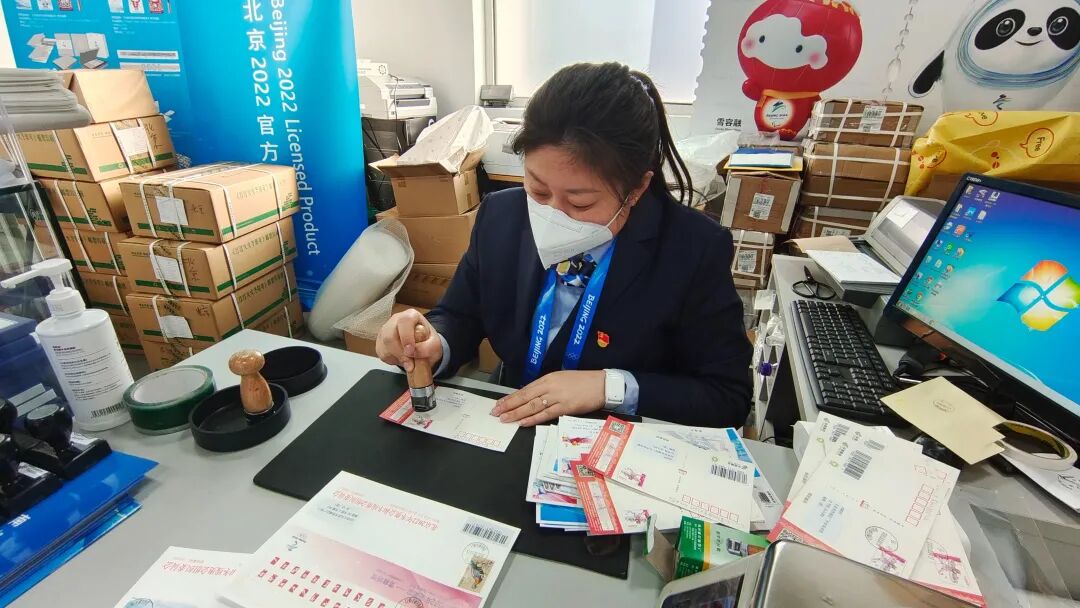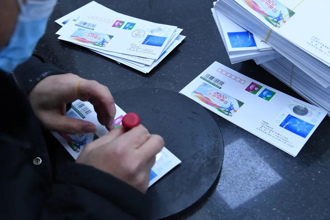 活动现场设置了邮票零售和纪念戳、日戳加盖等区域。邮迷们买到邮票后,在手绘封上贴好邮票,盖上纪念戳,寄给亲朋好友,共同分享冬奥激情。