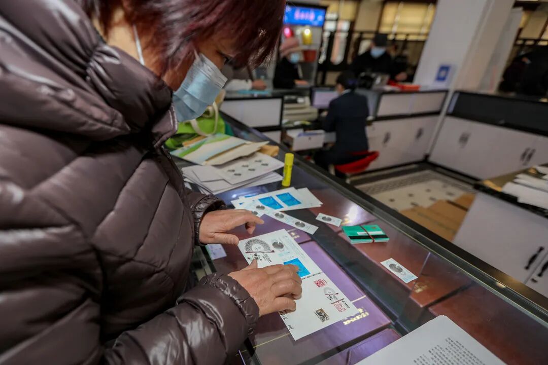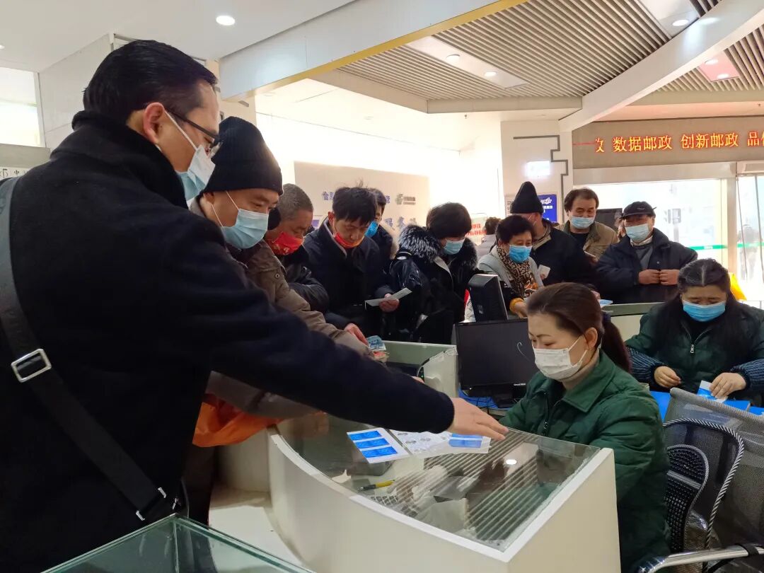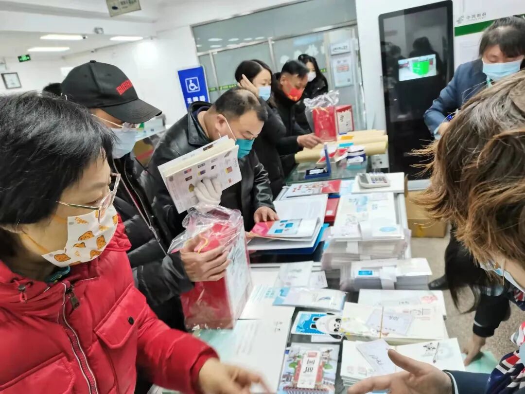 2月5日上午,西安市邮政分公司各网点均准时开门营业,销售冬奥会纪念邮票,不少老集邮迷早早来到营业厅排起了长队。