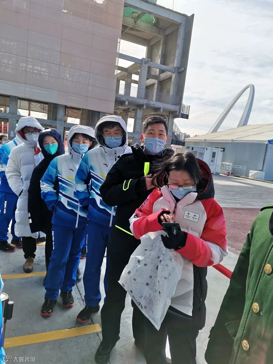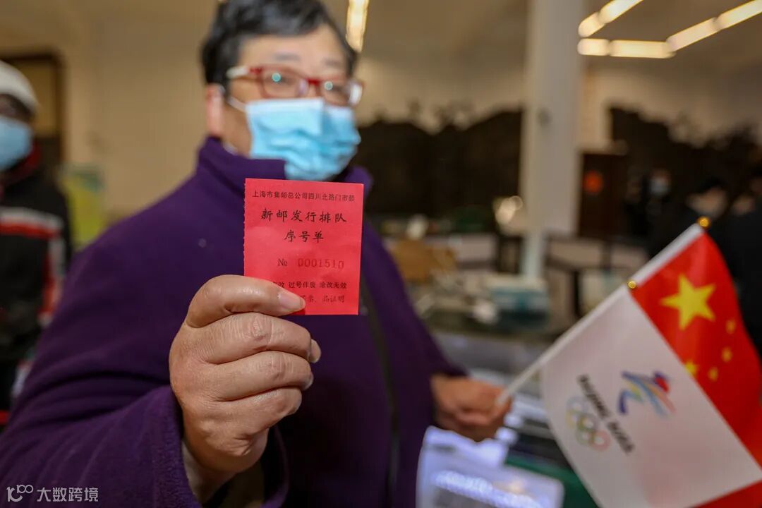 在石景山区首钢大跳台临时邮局,寒冷的冬风没有阻挡住购买者的热情,他们早早开始排队。工作人员也提前三个小时到达临时邮局进行消杀、插票、码放邮品等准备工作。