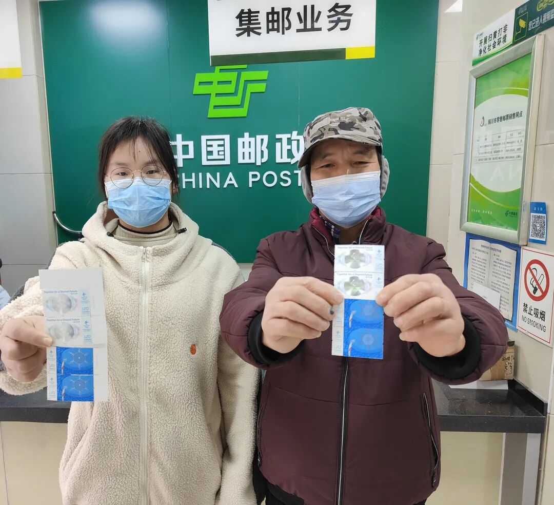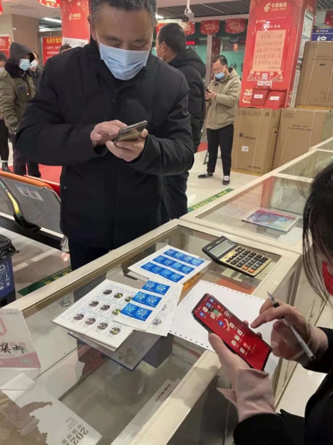 上午8点30分,宿迁市泗阳县邮政分公司的所有营业网点均开售冬奥会纪念邮票。现场邮迷们有序排队购买,在买到这套自己心仪的纪念邮票后,有的邮迷还第一时间盖上邮戳寄给亲朋好友留作纪念。