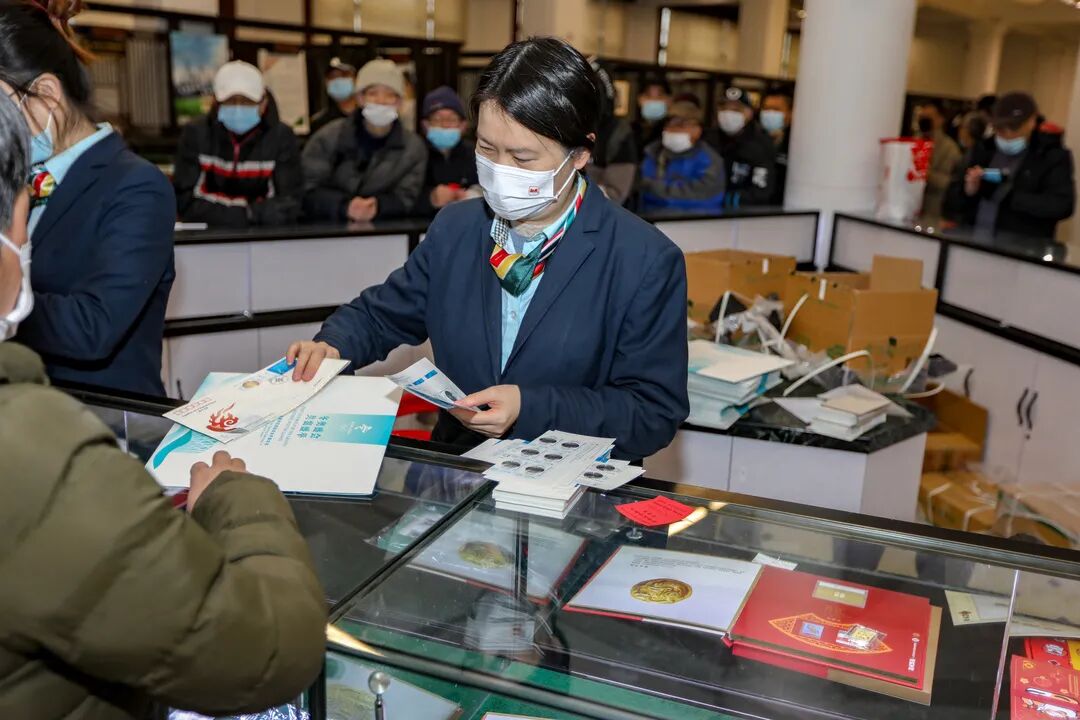 9点,马尾沟支局正式营业。集邮迷们有序进入,挑选纪念邮票、开幕纪念封和首日封等冬奥邮品。