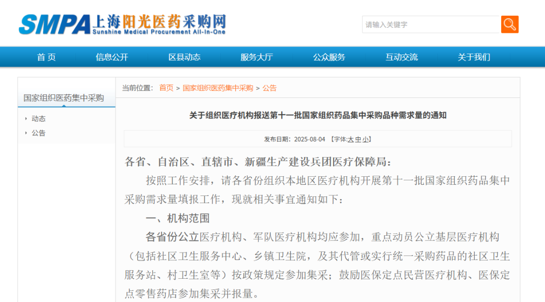 按照工作安排,请各省份组织本地区医疗机构开展第十一批国家组织药品集中采购需求量填报工作,现就相关事宜通知如下: