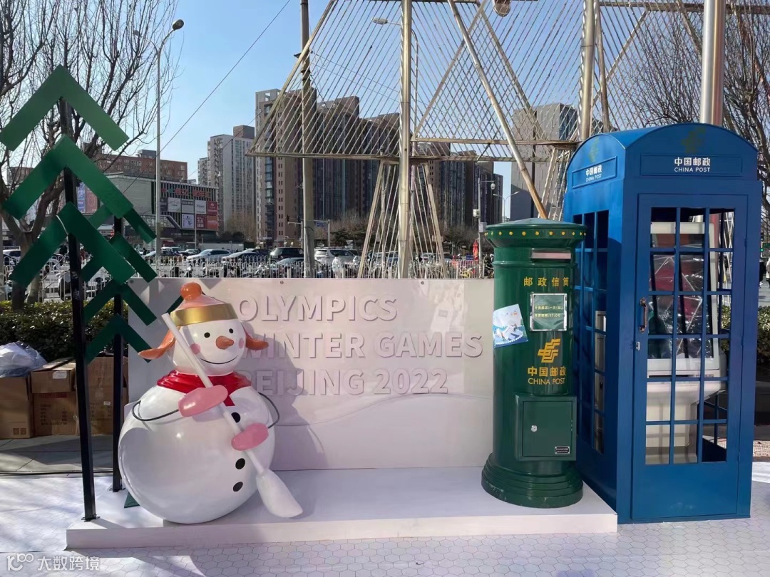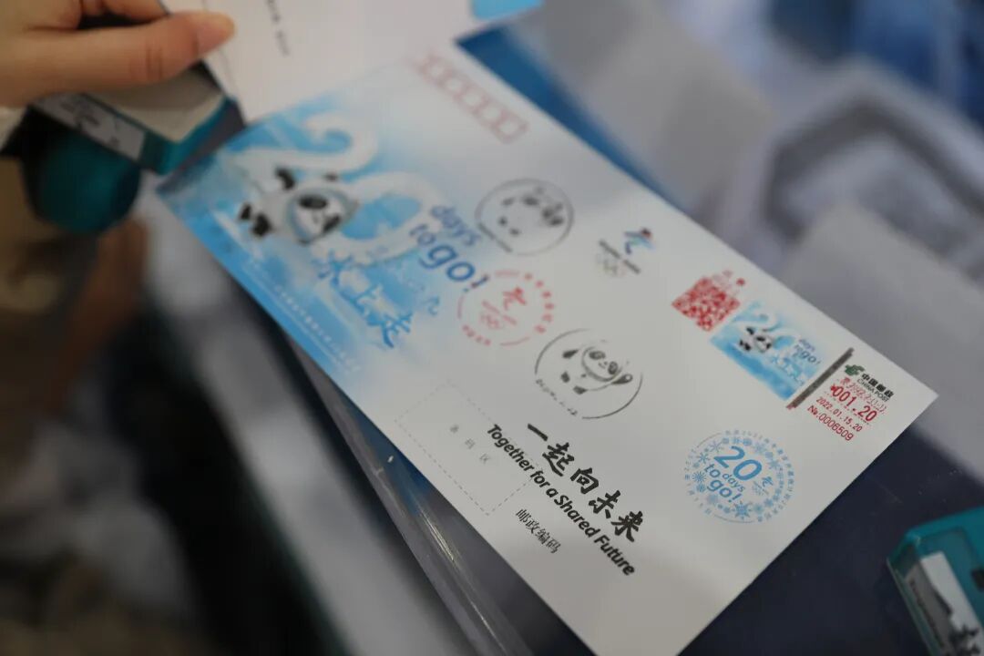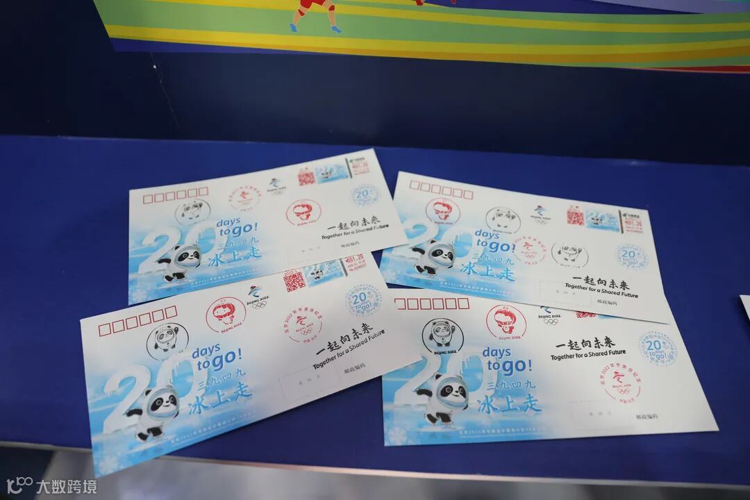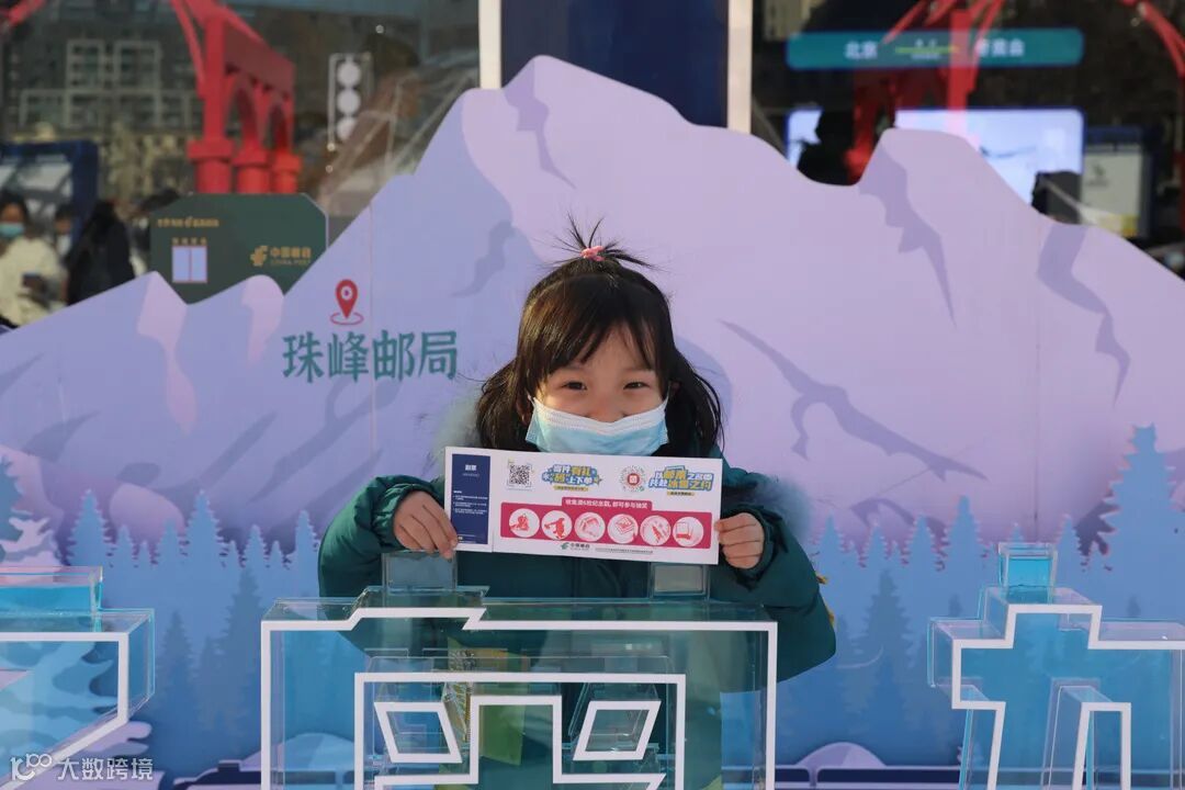 除此之外,快闪店还有邮政美陈拍照背景墙、虚拟滑雪体验区、明信片打印邮寄区等丰富的互动体验区。在邮品售卖区,还可以购买到冬奥相关的明信片、信封、邮票。