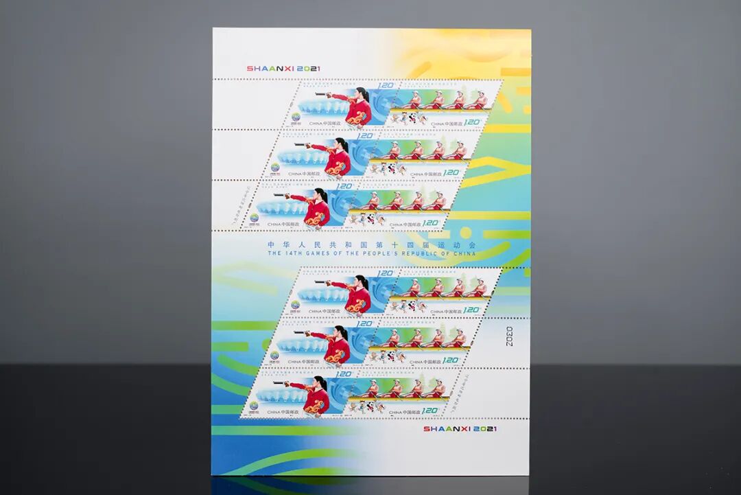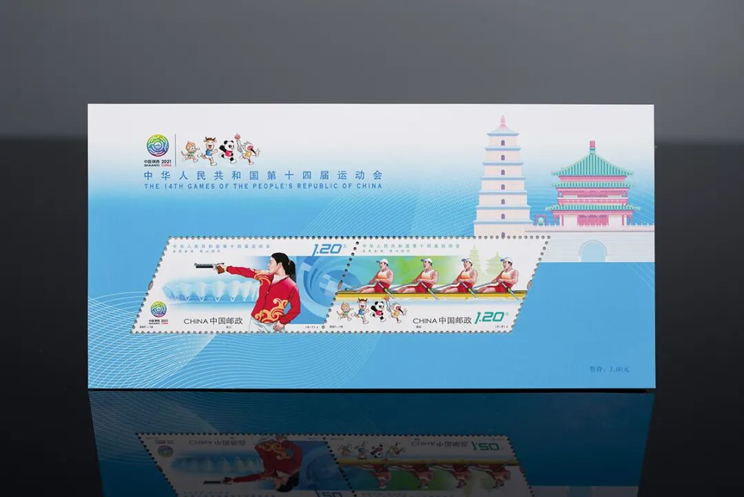 中国邮政定于2021年9月15日发行《中华人民共和国第十四届运动会》纪念邮票1套2枚、小全张1枚,全套邮票面值2.40元、小全张售价3.60元。邮票计划发行数量为套票660万套、小全张590万枚。