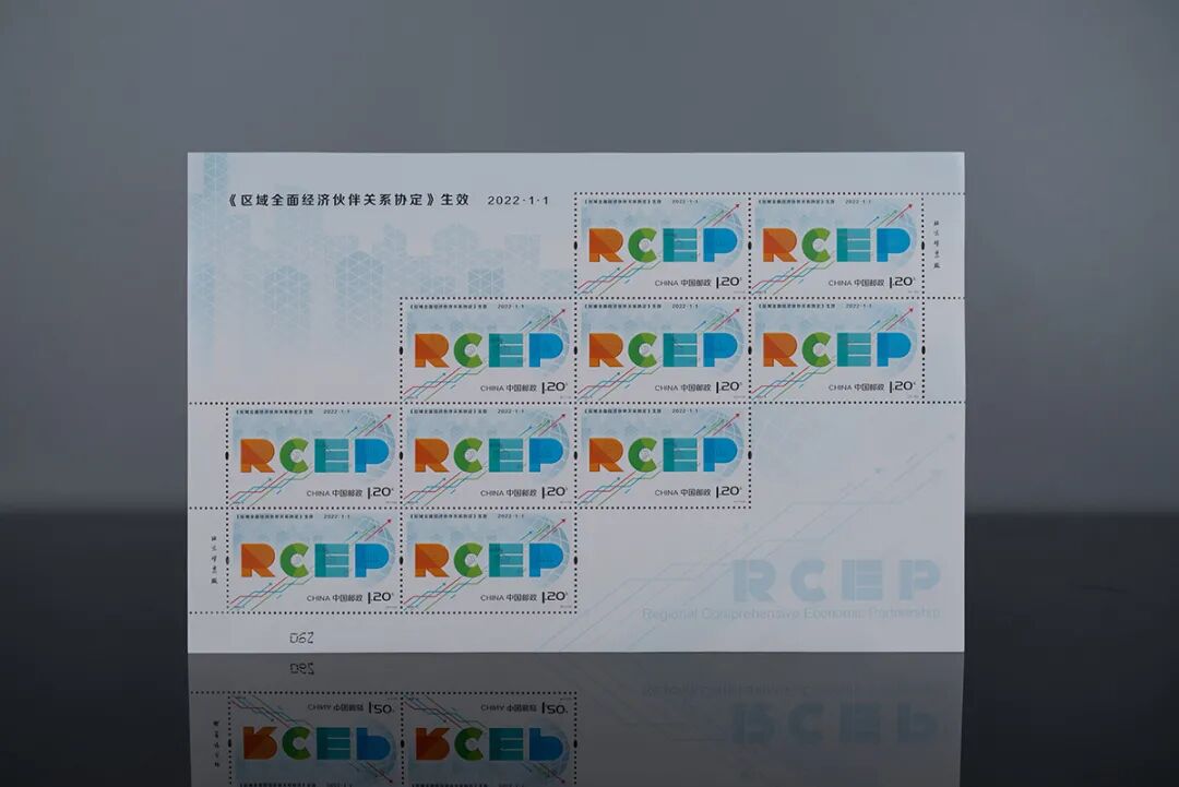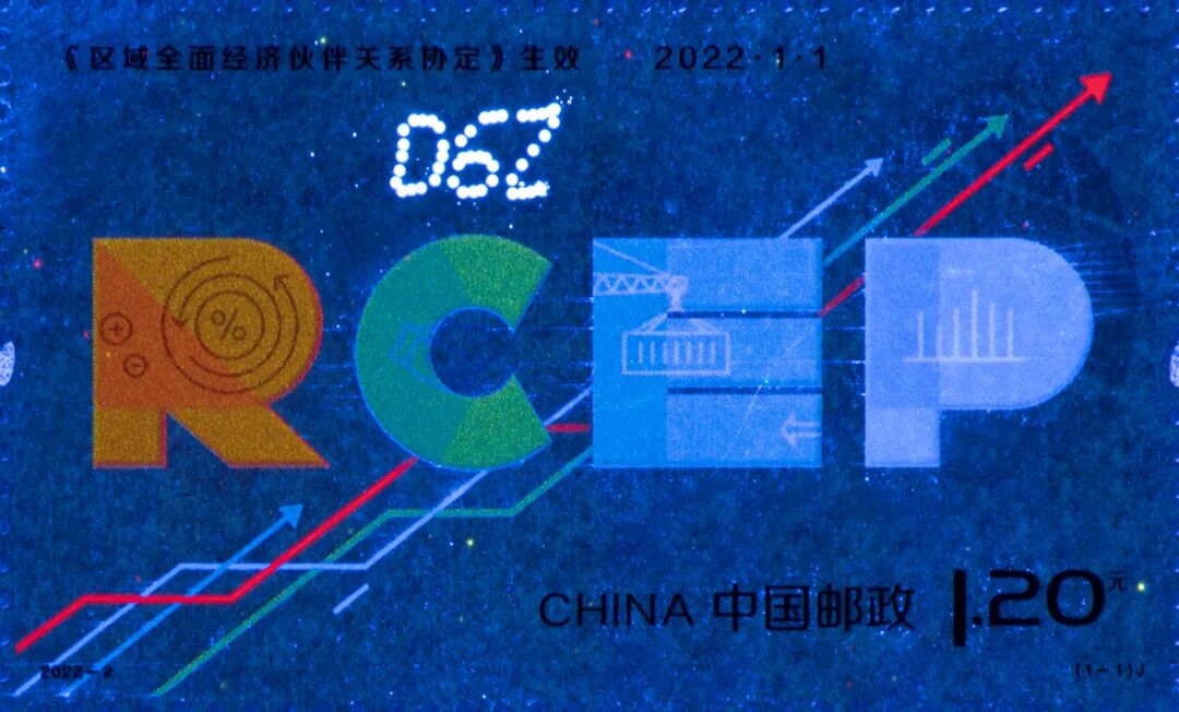 中国邮政定于2022年1月1日发行《<区域全面经济伙伴关系协定>生效》纪念邮票一套1枚,全套邮票面值1.20元,邮票计划发行数量为680万套。