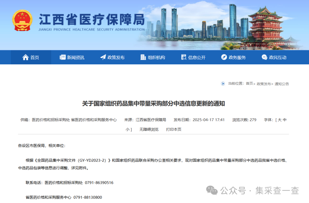 根据《全国药品集中采购文件(GY-YD2023-2)》和国家组织药品联合采购办公室相关要求,现对国家组织药品集中带量采购部分中选药品我省中选价格、中选药品包装等信息进行调整,详见附件。