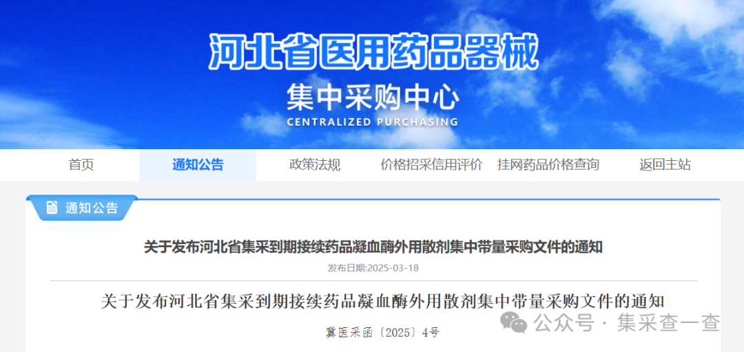 关于发布河北省集采到期接续药品凝血酶外用散剂集中带量采购文件的通知
