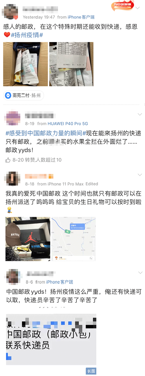 都在微博上表达了对邮政的感激