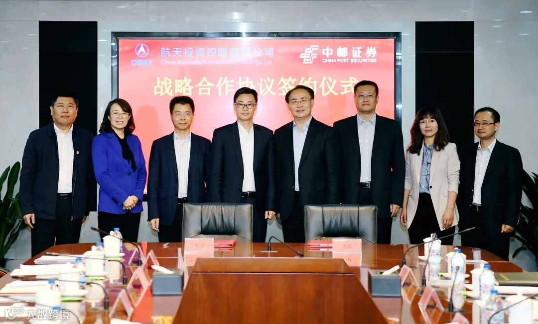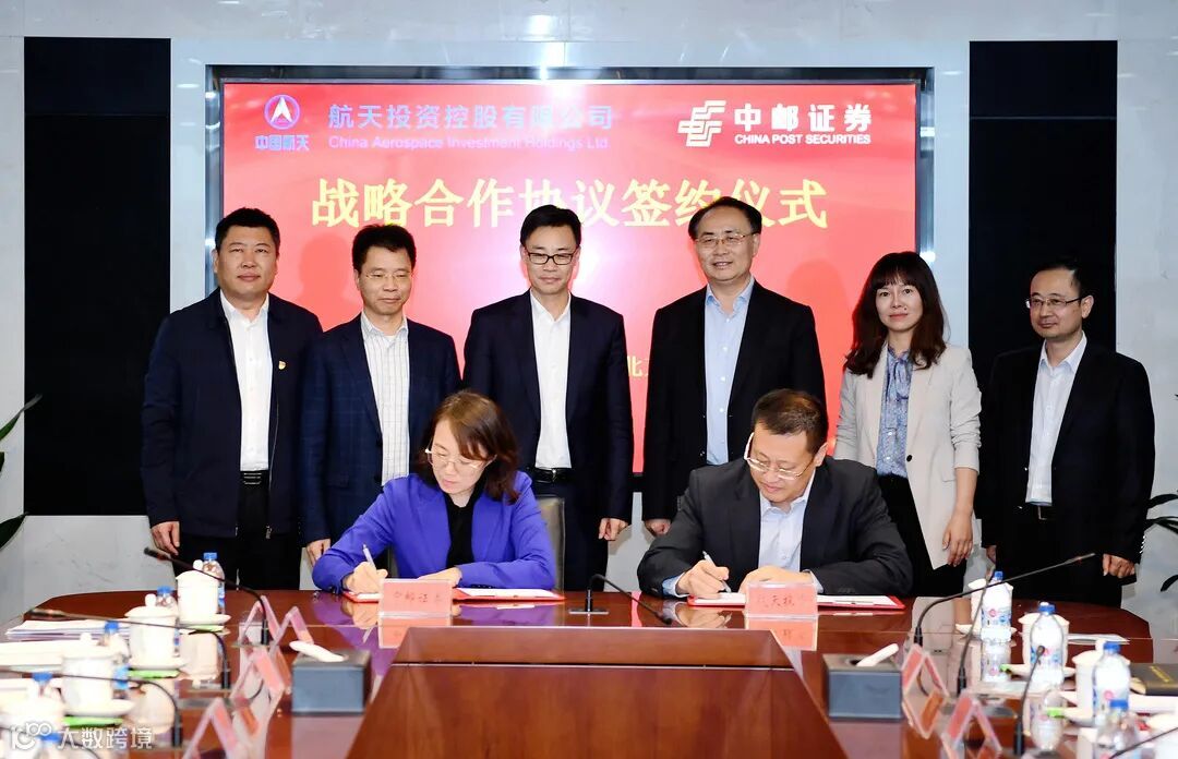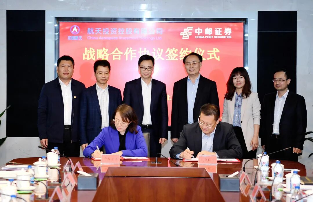 中国邮政集团有限公司总会计师、中邮证券董事长郭成林,航天投资董事长韩树旺见证签约。中邮证券总经理步艳红与航天投资总经理谢云代表双方签约。