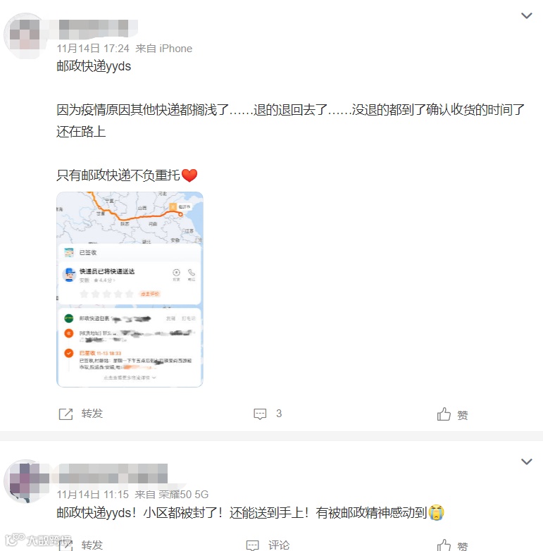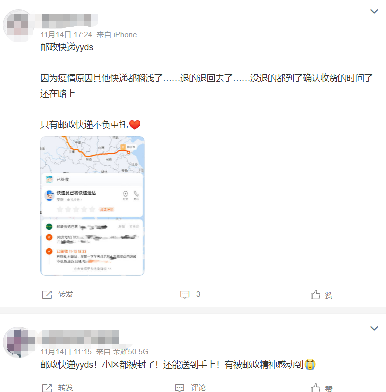 网友被邮政精神感动