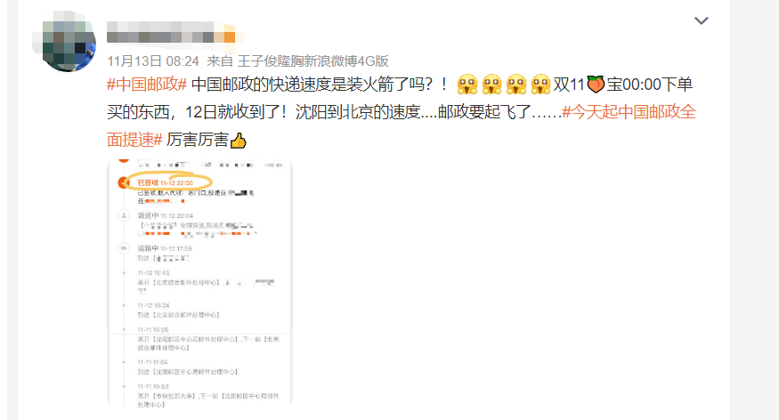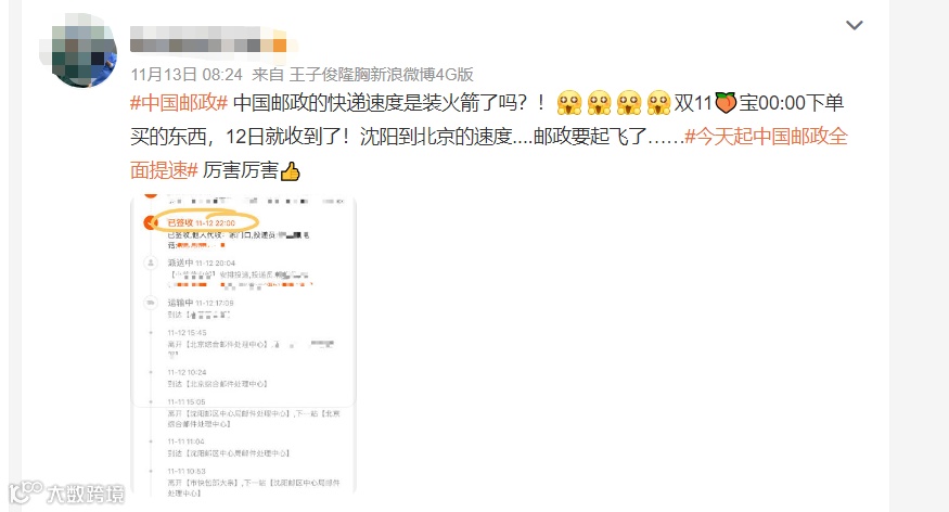 关于邮政“双11”速度