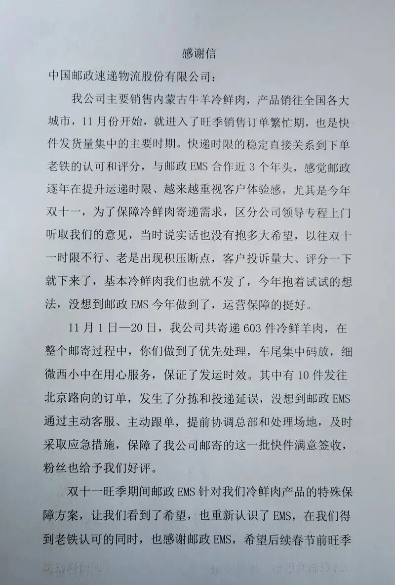 感谢邮政帮我们得到老铁认可!