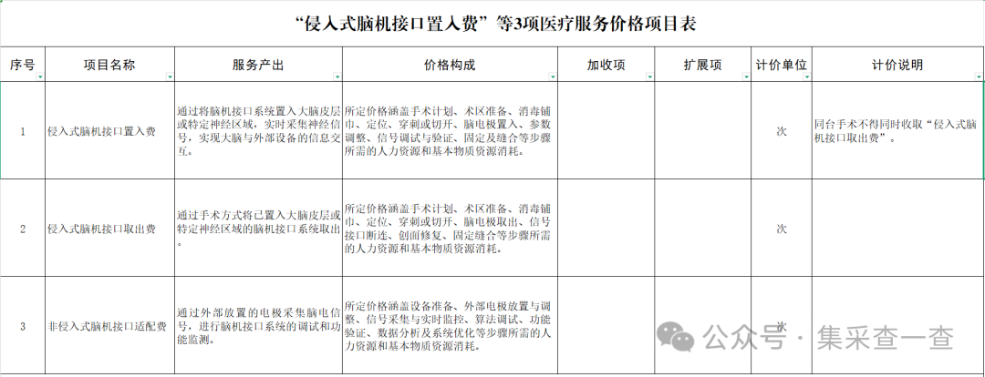 附件:“侵入式脑机接口置入费”等3项医疗服务价格项目表