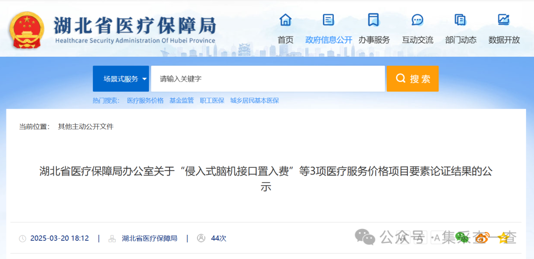 湖北省医疗保障局办公室关于“侵入式脑机接口置入费”等3项医疗服务价格项目要素论证结果的公示