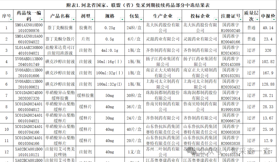 附件:河北省国家、联盟(省)集采到期接续药品部分中选结果表.xlsx