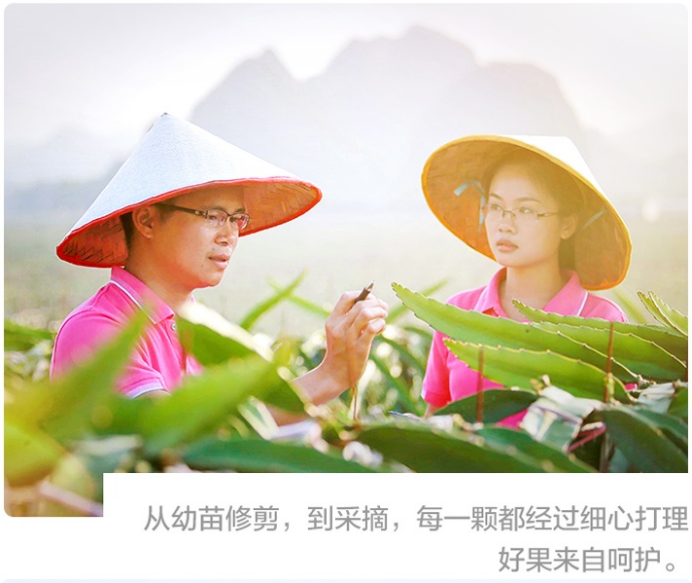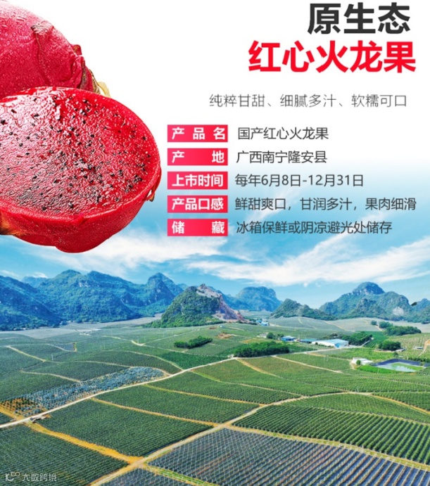 目前,南宁火龙果种植面积达13万亩,占全国火龙果总产量的五分之一,隆安县则是广西最大的火龙果产区。广西隆安“伊蜜”火龙果金都一号系列,坚持秉承品质至上理念,引进台湾优良火龙果品种和先进种植技术,并结合广西本地气候生态条件,采用进口的水肥一体化滴灌设备和先进的灯光补给系统模拟不同时段的太阳光波,专门给火龙果补光,促进火龙果的光合作用,提高火龙果的产量和品质。