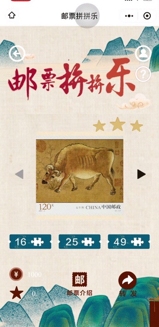 配合《五牛图》特种邮票发行,“中国集邮邮票百科”微信小程序启动“五牛集好运”线上活动,集齐《五牛图》全套5枚邮票,即可参与瓜分好礼活动,奖品包括《辛丑年》生肖邮票大版、小版,以及红酒兑换券等。