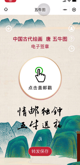 使用“中国集邮邮票百科”微信小程序或支付宝手机APP,AR扫描《五牛图》特种邮票,观看邮票动画。