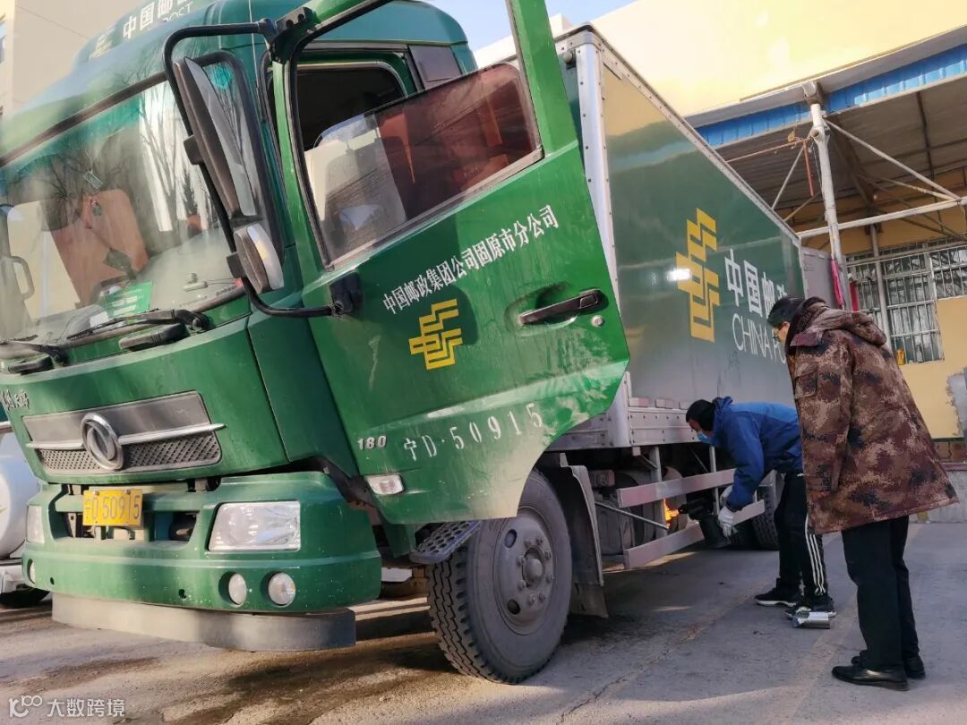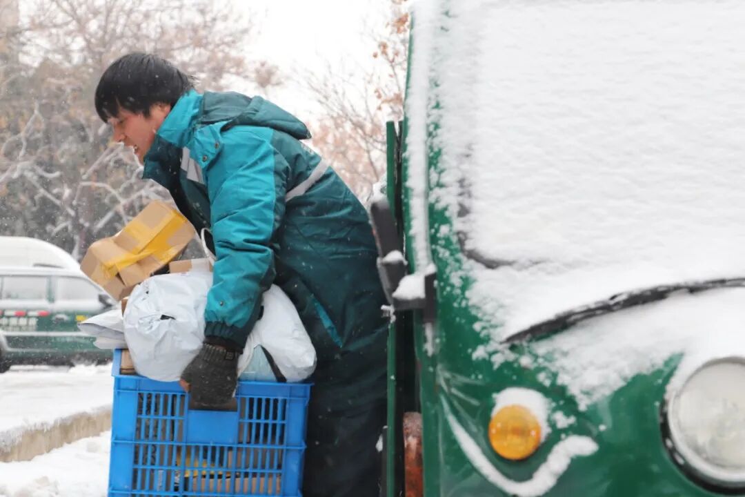 尽管是下午1点,山西太原气温仍达-7°C。太原邮区中心局场区调度员宋伟不停地指挥出入的邮车,时而拿起对讲机与驾驶员沟通,暴露在外的双手被冻得发红。