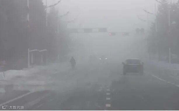 呼中区城区笼罩在浓浓的冰雾之中
